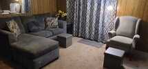 Fully furnished two-story house with central heat/air for rent in Madill, OK conveniently located near the schools and 20 minutes to either Lake Texoma or Lake Murray. 2 bedrooms upstairs with a half bath, downstairs has a full bath, fully-equipped kitchen with an oven range, microwave, refrigerator, dishes, and utensils, table and chairs, sofa, arm chair, washer and dryer. 1 queen bed and 1 full bed, sleeps 4; sheets and towels provided. A big porch and second story balcony offer relaxation and enjoyment of the outdoors and a private carport for convenience. Storm cellar and large fenced yard are shared with another house located on the property. Board games, puzzles, and outdoor games provided for fun and entertainment. Flexible lease to accomodate month-to-month or 12-month agreements. $1,200 per month plus $1,200 security deposit to move in. Price includes water, sewer, garbage, and yard maintenance. Background checks and references required. No smoking, no pets. House is currently available.