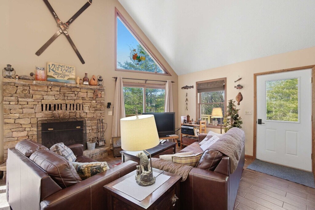 Feel at home in this charming 3-bedroom, 2-bathroom home in Swanton, MD, nestled in the peaceful mountains and comfortably accommodating up to 7 guests. This retreat is an ideal escape for families, couples, or small groups seeking both relaxation and adventure. This home features an inviting open-concept layout filled with warm wood accents and cozy living spaces. The fully stocked chef’s kitchen includes high-end appliances, a large refrigerator, ample cabinetry and cooking space, and a coffee maker (Keurig and drip). Enjoy the satellite-equipped TV, leather sofa, and indoor fireplace in the living room, with direct deck access. Other amenities include board games and books, an outdoor fire pit, a hot tub, a BBQ grill, outdoor seating, a washer and dryer, a high chair, and a Pack 'n Play. Located just minutes from Deep Creek Lake State Park, this home puts the very best of the area within easy reach. Nearby attractions include Deep Creek Lake State Park (2.5 miles), Deep Creek Lake Discovery Center (2.7 miles), Thousand Acres Lakeside Golf Club (3.0 miles), ASCI Adventure Sports Center International (12 miles), and Wisp Resort (12 miles). For dining, visit Fireside Deli & Wine Shop (3.7 miles), Dutch’s at Silver Tree (5.2 miles), Ace’s Run Restaurant & Pub (5.3 miles), or Uno Pizzeria & Grill (6.0 miles). Renting a car is a convenient option to explore the area. Check-in is at 4pm and check-out is at 10am. Parking is available for 3 vehicles in the driveway; street parking is not allowed. Guests must be 21 years or older to book this property. No pets are allowed. No parties are allowed—violations may result in immediate termination of the stay. An exterior camera is installed solely to monitor the cleaning team for quality and security purposes. The boat in the driveway is not for guest use. Includes a dedicated workspace. [SI]