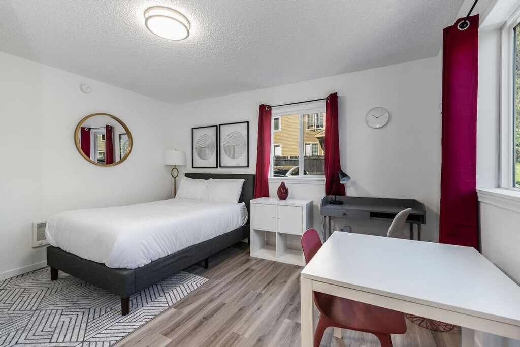 Experience the perfect stay in downtown Tacoma with this fully furnished, private studio apartment. Located centrally, this apartment offers seamless access to major highways, UW-Tacoma, the Convention Center, Tacoma Dome, and the Museum of Glass, making exploration effortless. Feel at home with all the comforts provided in this studio apartment. Enjoy seamless self-check-in, fast Wi-Fi, and a work desk. The fully equipped kitchen includes a stove, oven, and microwave, perfect for cooking at home. Relax on the queen-size bed with luxury linens and enjoy entertainment on the smart TV. The apartment features luxury vinyl floors and includes towels, soap, shampoo, conditioner, and a hairdryer. Parking is available with open parking spaces in the lot and ample street parking adjacent to the building. Situated in downtown Tacoma, between New Tacoma and Hilltop, this neighborhood offers easy access to all major freeways and Tacoma attractions. While the area is undergoing rapid gentrification, it still presents some challenges and opportunities for improvement. The apartment does not have air conditioning, but fans are provided. Security cameras are installed outside the building, and all apartment doors have deadbolt locks. Smoking is prohibited in the apartment and on the premises, including cigarettes, cigars, pipes, vapes, and marijuana. Check-in is at 4 PM and check-out is at 11 AM, with flexibility depending on prior bookings. Quiet hours are after 10 PM. The apartment is remote work-friendly with fast Wi-Fi and a dedicated work desk. [SI]