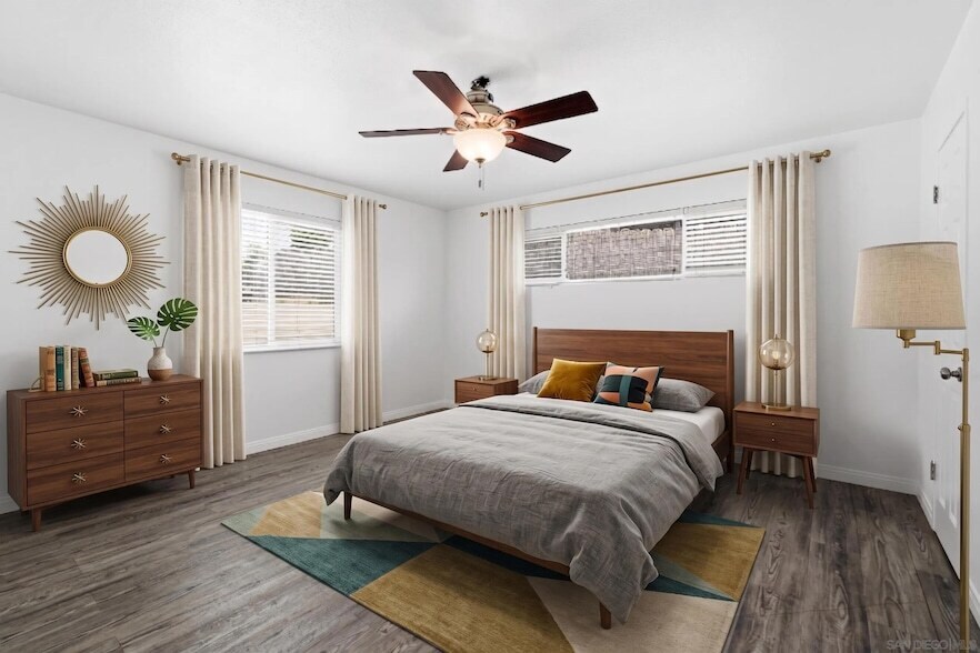 Spacious and newly remodeled, 4 BR/ 2 BA home in quiet pocket of La Mesa. This stunning home has all the features you are looking for - paid for solar system on the roof to help with SDG&E bills, an in-ground swimming pool, hot tub, a large storage shed & two car garage complete with working garage refrigerator! That's on top of the brand-new Samsung refrigerator & bespoke gas range in the kitchen. New countertops, sink, faucet, solid brass cabinet pulls & modern backsplash round out the list of kitchen upgrades. New paint throughout, central AC / heat, new vanity lights in both bathrooms as well as new faucets. Large walk-in closet in the master bedroom (not pictured). Spacious living area and extra-long driveway that is fully gated to keep pets or kids in the driveway area. Close to Grossmont Center, Costco & Lake Murray. This one has it all and won't last long!