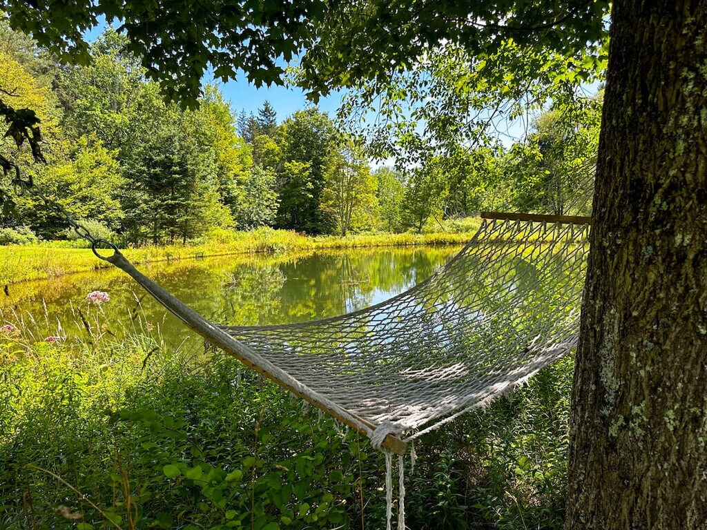 The advertised rate of $3,375/month is the lowest available price, based on a 1 month(s) stay with a move-in date of June 4, 2026. Rates vary depending on the duration of stay, season, and other parameters. For exact pricing and additional pricing components, please visit our website and enter your desired move-in and move-out dates. The rate is applicable when billed upfront; it can be higher if billed in multiple payments. Slow down at Sunday Hollow, a peaceful A-frame cabin on 3.5 private acres with a stream and pond. This 2-bedroom, 1-bath retreat is perfect for couples or solo stays seeking quiet and connection with nature. Feel at home in this intimate 412 sq ft A-frame with a warm, vintage-inspired design. This cabin features an efficient kitchen stocked for everyday cooking (no dishwasher or microwave) and a comfortable living area with forest views. Enjoy the renovated deck with dining and a charcoal grill, a fire pit, and a hammock for outdoor lounging. The natural landscape offers space to explore and unwind, ideal for wildlife watching and quiet time outdoors. One dog is allowed with prior approval and a fee. Located on a quiet dead-end road with a secluded setting, this cabin is 15 minutes to Margaretville, Roxbury, Andes, and Bovina for dining, shops, and year-round adventure. Delaware County, NY, is a premier four-season vacation destination offering something special in every season. Nestled in the Catskill Mountains, this picturesque region is perfect for outdoor enthusiasts, foodies, and those seeking a peaceful escape. Approximate distances to popular spots: Plattekill Ski Center: 10.2 miles, Belleayre Ski Center: 17 miles, Stone Tavern Farm: 9 miles, The Inn at West Settlement: 11 miles, Roxbury Barn: 8.2 miles, Maple Shade Farm: 17 miles, Cooperstown Dreams Park: 42 miles, Hunter Mountain: 39 miles, and Windham Mountain: 34 miles. The loft bedroom is accessed via a ladder, and guests should be comfortable climbing. For families, it is recommended that children sleep in the main floor bedroom for safety. Pond use is at your own risk, as the pond is natural and not treated. There is limited or no cell service, so enable Wi-Fi calling before arrival and save or screenshot arrival details (address, door code, Wi-Fi, contact info) in advance. Quiet hours are from 9:00 PM to 8:00 AM, and outdoor noise should be kept to a minimum, especially at night. No parties or events are allowed, and the guest count must match the reservation. Daytime visitors require prior approval. The property is on a private well and septic system, so no outdoor hoses, sprinklers, slip and slides, or kiddie pools are allowed. Flush toilet paper only (no wipes or paper products), and please use water conservatively. This is a rural Catskills setting with active wildlife, and insects and occasional rodents are part of the natural environment. AWD, FWD, or 4WD is recommended for winter travel (October–April), and all-weather tires with good tread are required. Avoid rear-wheel drive vehicles in snow or ice. The driveway is plowed and shoveled every 3–4 inches of snow, and a shovel is provided for guest use. No smoking is allowed indoors. A vehicle is needed to enjoy the countryside, as there is no or limited Uber or cab service in the area. Check-in is from 4:00 PM to 10:00 PM, and check-out is at 11:00 AM. No changes to check-in or check-out times are allowed during holidays or from Memorial Day through Labor Day. Outside those dates, adjustments may be possible with at least 24 hours’ notice and may include a fee. Registration Number: 20250031 [SI]