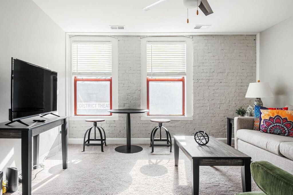 Welcome to this modern 1-bedroom condo in downtown Indianapolis! Feel at home in this centrally located apartment. This apartment features a fully equipped kitchen, a cozy living area, a 55" Smart TV, central heat and air, and a washer/dryer in-building. Parking passes are available for the on-site lot behind the building for $20 per night, $100 per week, and $250 per month. Please contact us in advance to reserve a spot as spaces are limited. Pets are welcome with a fee of $20 per night, $100 per week, or $250 per month, and are preferably potty-trained dogs under 50 lbs. Located on bustling Massachusetts Avenue, this vibrant neighborhood is known for its arts, culture, dining, and entertainment. With historic buildings, eclectic boutiques, art galleries, and diverse dining options, it offers a lively and engaging atmosphere. Indy offers various convenient transportation options, including car rentals, public transit via the Red Line and Indy Go Bus Systems, bike rentals through the Indiana Pacers Bikeshare Program, and ride-sharing services like Uber and Lyft. Many attractions, shops, and restaurants are within walking distance. The heating system is louder than average, and earplugs are recommended if you're sensitive to noise. Music may be heard from the cocktail lounge below (Sun–Thu 5pm–12am, Fri–Sat 5pm–1am; hours vary). Quiet hours are from 10pm to 6am, and parties and smoking are prohibited in the property ($1000 fine). [SI]
