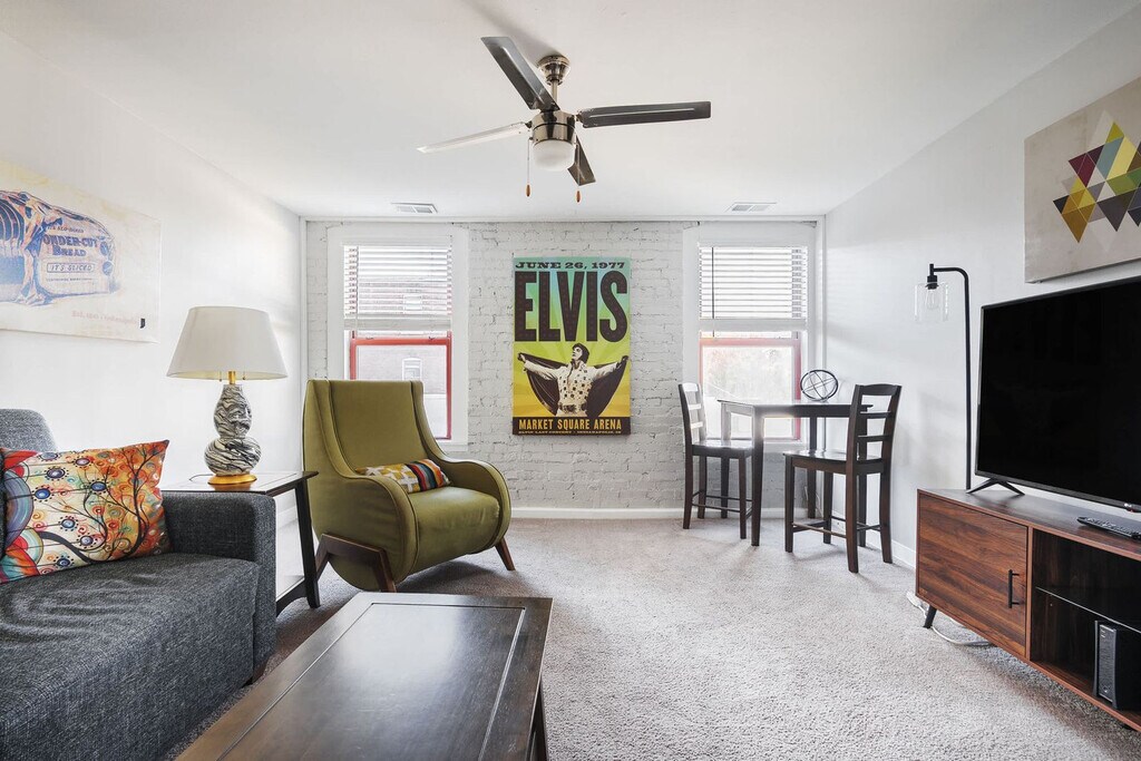 Welcome to this charming 2-bedroom apartment in Indianapolis! Feel at home in this centrally located apartment on bustling Massachusetts Avenue. This apartment features a fully equipped kitchen, a cozy living room with a pull-out sofa, a 55" smart TV, high-speed Wi-Fi, central heat and air, and a Ring doorbell on the outside of the door. A washer and dryer are available in the building. Parking passes are available for purchase at a rate of $20 per night, $100 per week, and $250 per month. Please contact us in advance to reserve a spot as spaces are limited. The Argyle on Mass Ave is a vibrant neighborhood known for its arts, culture, dining, and entertainment. With historic buildings, eclectic boutiques, art galleries, and diverse dining options, it offers a lively and engaging atmosphere. Indy offers various convenient transportation options including car, public transit, biking, taxis, ride-sharing, and walking. The heating system is louder than average when running, earplugs are recommended for light sleepers. No parties and no smoking are permitted in the property, and will incur a $1000 fine. Quiet hours are from 10pm to 6am. Please be respectful of our neighbors and keep noise levels down. Pets are welcome with a fee of $20 per night, $100 per week, or $250 per month, and must be potty-trained dogs, preferably under 50 lbs. Clean up after your pet and keep your dog on a leash in common areas. Violating these rules may result in eviction without a refund. [SI]