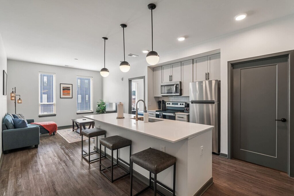 Designed with the modern traveler in mind, this apartment offers contactless check-in, smart features, and thoughtful details that make you feel right at home. Located in the lively Broad Ripple and Glendale neighborhoods, you’ll be steps away from shopping, dining, and local favorites! This spacious apartment features inviting living areas, a fully equipped kitchen, and a bathroom complete with toiletries. Enjoy access to the building's fitness center and working lounge. You can also enjoy an in-unit washer and dryer, a smart TV with streaming apps installed, a TV in the living room, and complimentary coffee. An additional pet fee between $100 and $300 will be collected separately, based on stay length. A mid-stay cleaning and early check-in/late checkout are available for an additional fee. Enjoy the buzz of Glendale Town Center, a vibrant hub filled with shopping, dining, and entertainment. With everything at your doorstep and downtown just minutes away, it’s the perfect blend of fun and convenience. This is a smoke-free environment, and any sign of smoking is a violation of the stay agreement, which may result in immediate termination and recovery fees beginning at $500. There is a $500 penalty for removing smoke detectors and a $200 penalty for lost key fobs. Guests must agree to not disturb neighbors at all times during the stay and must observe quiet hours from 9pm-8am each day. The home is proactively monitored with decibel sensors for compliance with this noise policy. Check-in is at 4 PM and check-out is at 11 AM, with a $75/hr late fee. No weapons or drugs are allowed, and police will be called for violating this rule. No outside guests are allowed without permission. All pets must be on a leash when outside on the property. [SI]