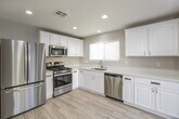 ¿Quieres hacer un tour por tu cuenta? Haga clic en el botón “Mostrarse” en la lista de esta casa o llame para registrarse para una presentación autoguiada en el momento que mejor le convenga. Junto con sus tres dormitorios y dos baños y medio, esta casa de alquiler renovada de Las Vegas ofrece varias características muy codiciadas, como un patio cerrado que acepta mascotas, un garaje adjunto y un plano abierto en el nivel principal. Modernos pisos de madera y un techo iluminado le dan la bienvenida a la sala de estar, donde encontrará varias ventanas grandes para que disfrute de abundante luz natural. Los armarios completamente blancos y las encimeras de cuarzo a juego quedan genial con los elegantes electrodomésticos de acero inoxidable de la cocina. Guarde los artículos esenciales adicionales en la despensa. En la planta superior, encontrará un enorme vestidor en la suite principal de colores neutros. El baño en suite estilo spa cuenta con una bañera y una ducha independiente, además de lavamanos con tocador doble. ¡Venga hoy mismo a recorrer esta casa de alquiler en Las Vegas!