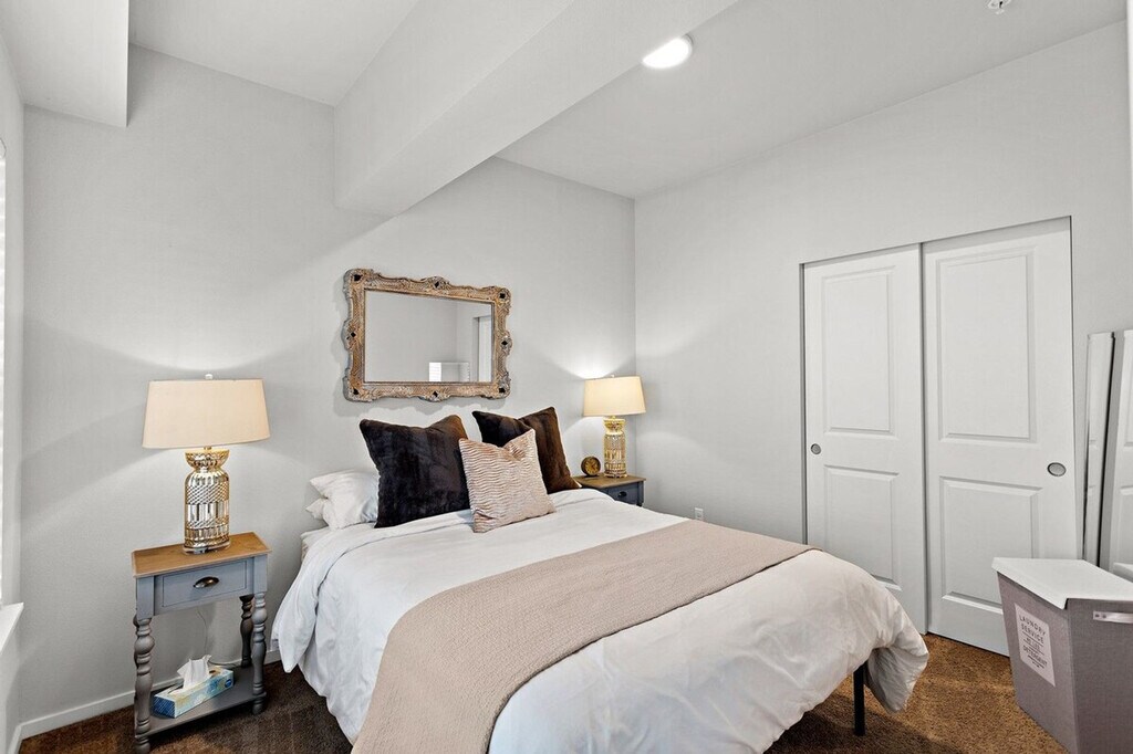 Feel at home in this brand new condo located in the prime Tacoma Dome and city center area. With over 700 square feet of modern living space, this 1-bedroom, 1-bathroom apartment offers a spacious and open floor plan. Enjoy the convenience of being just minutes away from the waterfront, Tacoma Dome, and the University of Washington. The condo features a plush Stearns and Foster Queen bed with Hotel Collection linens, ensuring a restful night's sleep. The modern kitchen boasts sparkling white granite countertops and stainless steel appliances, fully stocked with everything you need from cookware to coffee. The bathroom is equipped with towels, shampoo and conditioner, and all basic toiletries. Relax in the living area on the luxurious leather tufted Chesterfield sofa, perfect for enjoying some popcorn and Netflix. Reserved parking is included, providing added convenience for your stay. Nestled on a quiet street in the Tacoma Dome neighborhood, this condo offers stunning views overlooking Commencement Bay, the downtown Tacoma city skyline, and the Tacoma Dome. Its prime location provides easy access to public transportation and nearby attractions, making it an ideal spot for exploring the city. The condo is part of a controlled access building, featuring a keyless lobby and condo door for easy entry. A washer and dryer are available in the condo, complete with laundry detergent, dryer sheets, and an iron and ironing board. [SI]