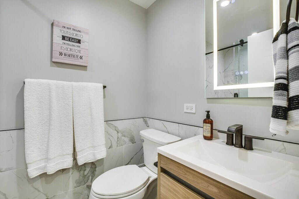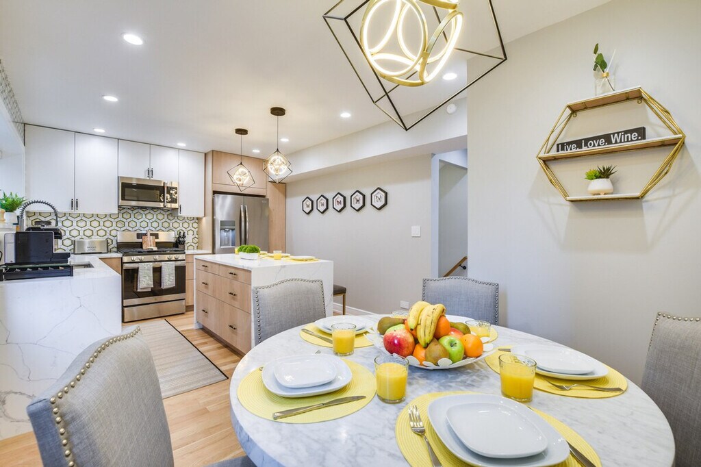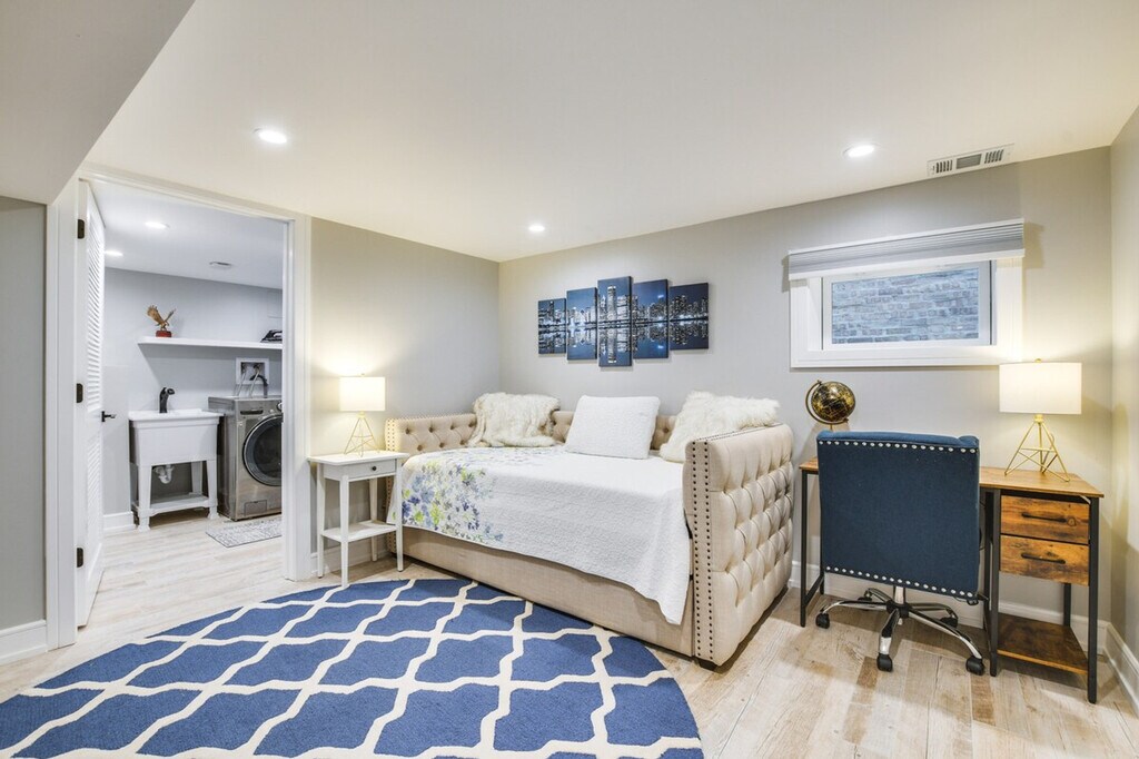 Feel at home in this ultimate Chicago getaway! This tri-level, 4-bedroom, 3.5-bath townhome boasts a sophisticated interior and an unbeatable location. Please note that this home requires one flight of stairs to access, and all bedrooms are located upstairs or in the basement and require additional stairs. This welcoming townhome features multiple living spaces, including a dining table, breakfast nook, and home office space. Enjoy modern amenities such as 3 Smart TVs, books, board games, a high chair, baby gates, central air conditioning and heating, a ceiling fan, complimentary toiletries, a hair dryer, an iron and board, linens and towels, and a washer and dryer. The kitchen is fully equipped with a fridge, stove/oven, dishwasher, microwave, cooking basics, a single-serve pod coffee maker, blender, toaster, Crockpot, dishware and flatware, and paper towels and trash bags. Reserved community parking is available for one vehicle, and an EV charger is available (bring your own cable). This property is pet-friendly with a $50 fee per stay (max 2 pets). Relax lakeside at Rosemont Avenue Beach, explore campus, or venture downtown to visit Chicago’s top attractions, like Navy Pier and Millennium Park. Steps away from beaches, restaurants and public transit. Quiet hours are observed from 8:00 PM to 8:00 AM. Absolutely no smoking is allowed inside or anywhere on the property. No events, parties, or large gatherings are allowed. Enjoy the private patio with an outdoor dining area and gas grill (propane provided). Guests will have access to the entire property via keyless entry. Registration Number: R2 [SI]