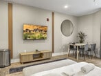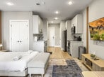 Nestled in a vibrant neighborhood, this charming studio apartment offers a delightful retreat in the heart of the city. Located just steps away from bustling streets and cultural landmarks, this space is ideal for couples or solo travelers seeking a comfortable stay with easy access to the city's attractions. This inviting studio apartment is thoughtfully designed to cater to all your needs for a carefree and enjoyable stay. As you step inside, you'll be greeted by a bright and inviting space, thoughtfully designed for comfort and convenience. The studio features a comfortable queen-sized bed, perfect for a restful night's sleep after a day of exploring the city. The fully equipped kitchen features modern appliances and everything you need to whip up a delicious meal. Enjoy your culinary creations at the dining table. Pets are allowed depending on size. The following additional per pet cleaning fee applies: 1-4 nights: $25 per night, 5-29 nights: $200, and 30+ nights: $300. This apartment's prime location allows you to explore the city with ease. Discover local eateries, trendy boutiques, and cultural attractions just minutes from your doorstep. Whether you're here for business or leisure, this cozy apartment offers a perfect blend of comfort and convenience for your stay in the city. There are surveillance cameras in the hallways for security and a Minut device in the unit for noise level monitoring. No shoes are allowed in the house and guests are requested to do their dishes before leaving. No smoking is allowed and if there is evidence of smoking indoors, a $500 fine will be imposed. [SI]