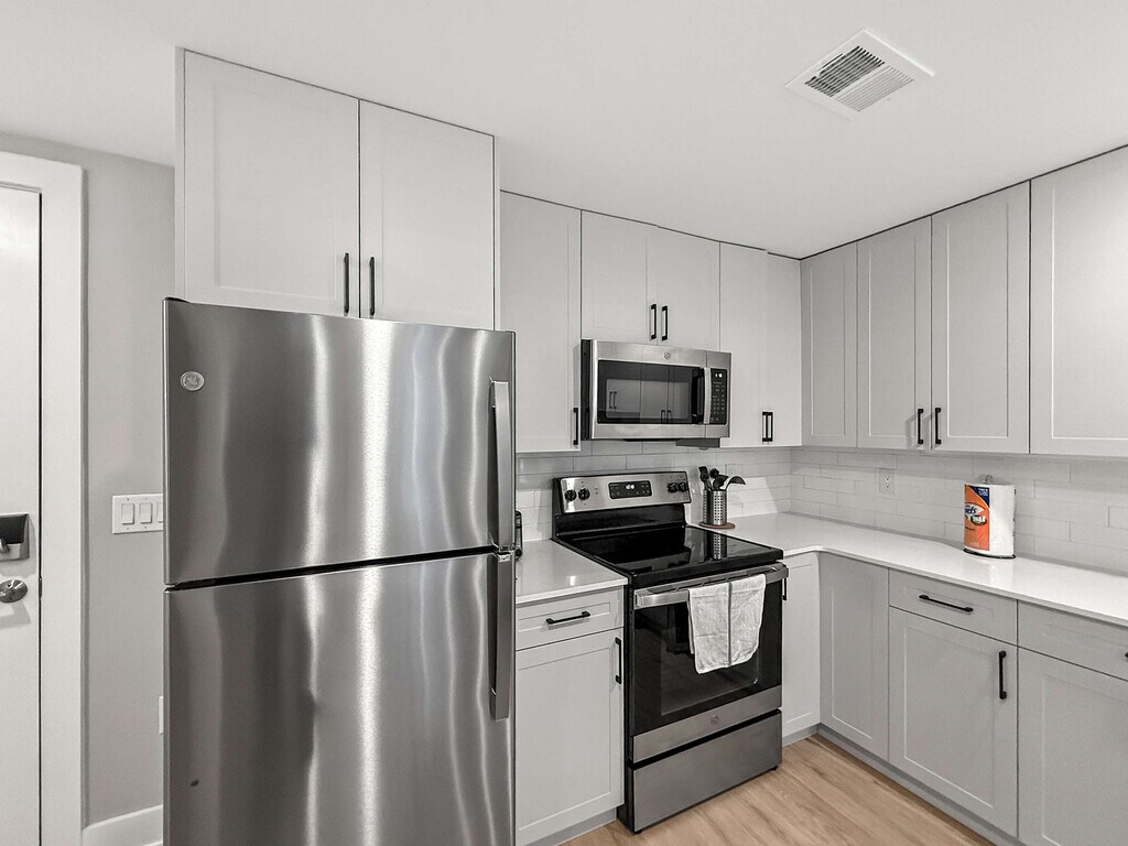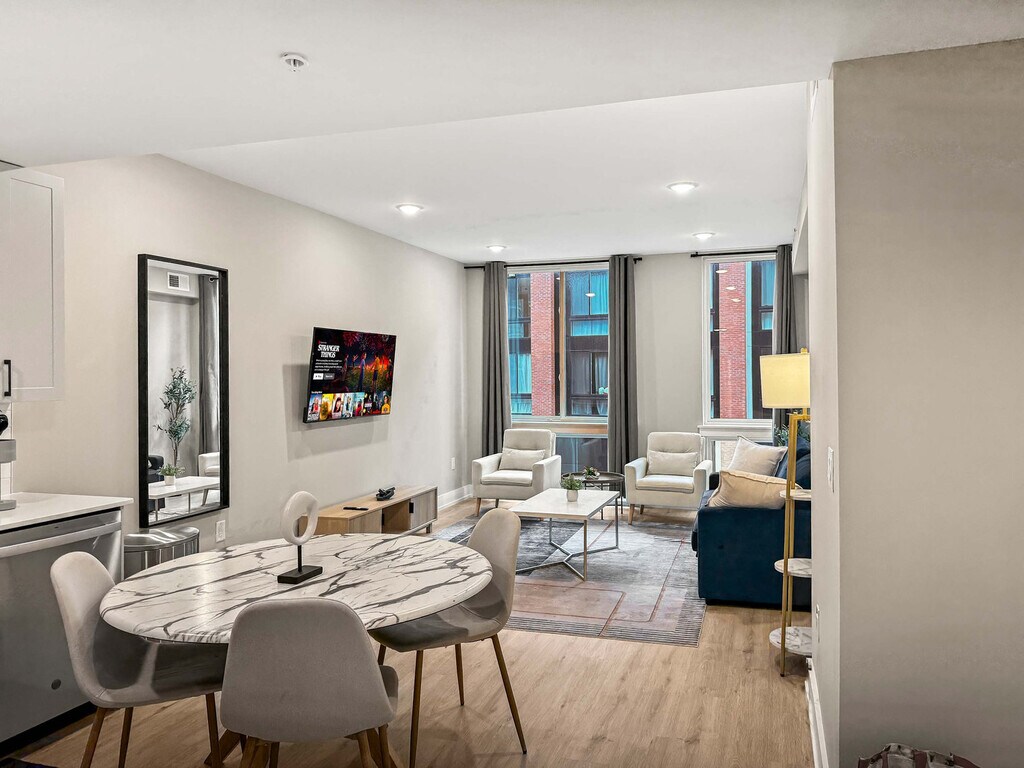 Nestled in a vibrant neighborhood, this charming 1-bedroom apartment offers a delightful retreat in the heart of the city. Located just steps away from bustling streets and cultural landmarks, this space is ideal for couples or solo travelers seeking a comfortable stay with easy access to the city's attractions. This inviting 1-bedroom apartment is thoughtfully designed to cater to all your needs for a carefree and enjoyable stay. Step into the inviting living room, a stylish and comfortable space designed for relaxation and entertainment. The room is tastefully furnished with a plush sofa bed, perfect for sinking into after a day of exploring the city. Enjoy your favorite movies on the flat-screen TV, or simply unwind with a good book in the cozy ambiance. The fully equipped kitchen features modern appliances and everything you need to whip up a delicious meal. Enjoy your culinary creations at the dining table. Retreat to the bedroom, where a comfortable queen-size bed awaits, promising a restful night's sleep. The bedroom also offers plenty of storage space for your belongings, ensuring a clutter-free environment throughout your stay. Pets are allowed depending on size. The following additional per pet cleaning fee applies: 1-4 nights: $25 per night, 5-29 nights: $200, and 30+ nights: $300. This apartment's prime location allows you to explore the city with ease. Discover local eateries, trendy boutiques, and cultural attractions just minutes from your doorstep. Whether you're here for business or leisure, this cozy apartment offers a perfect blend of comfort and convenience for your stay in the city. Surveillance cameras are in the hallways for security and a Minut device is in the unit for noise level monitoring. No shoes are allowed in the house and please do your dishes before leaving. No smoking is allowed indoors, and if there is evidence of smoking indoors, a $500 fine will be imposed. [SI]
