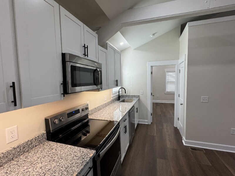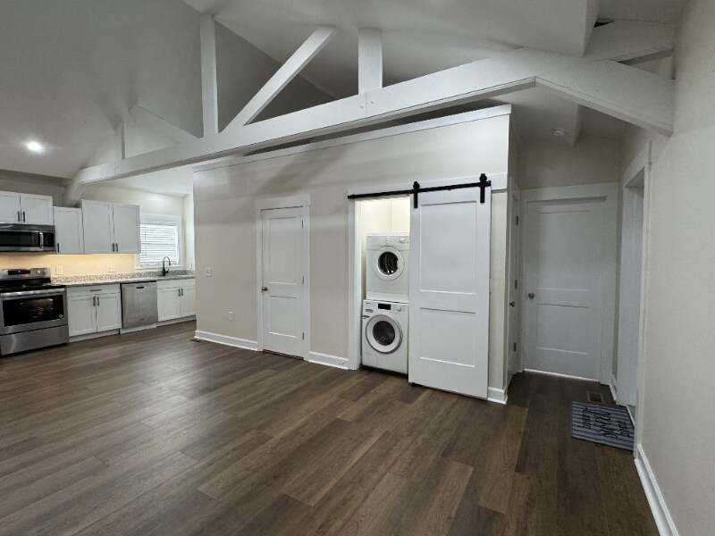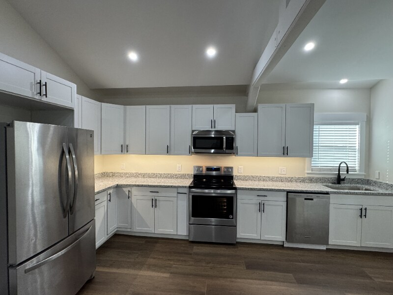 Property Id: 2247785 One-level duplex home is freshly created with high ceilings and heavy exposed beam trusses with a spacious feel. Rich woodgrain flooring flows throughout the all-new designer interior. The new kitchen is the heart of this home, with shaker cabinets, a separate pantry, large granite counters, and stainless steel appliances that make cooking a joy! Spacious bedrooms have mirrored closets, ceiling fans and new windows to let in lots of natural light. The tiled spa shower boasts a ceiling rain shower plus a dual-control wand. All HVAC, plumbing, and electrical systems are new. Thick soundproof insulation makes the home cozy and quiet, and lots of green and energy-saving features keep utility costs lower. One bedroom has a loft for storage or extra sleeping space (would need a ladder). Large deck, plenty of parking. $1,350/mo is discounted rent—if you pay before the 1st, get $30 off the $1,380 rent. Pets welcome (3 max, deposit + fee). 3D walk through.