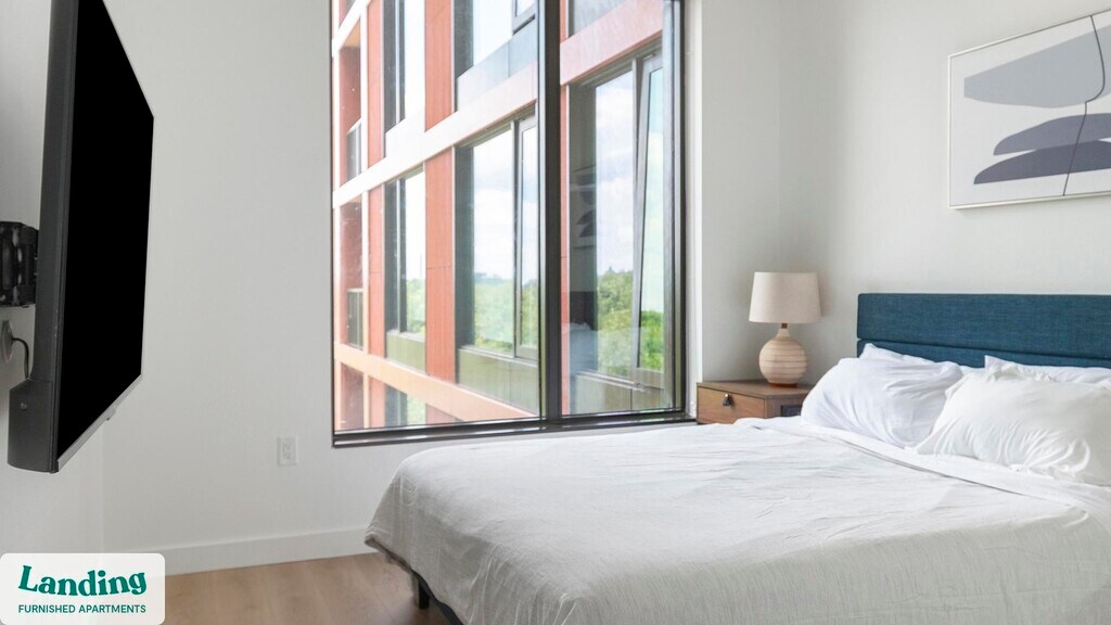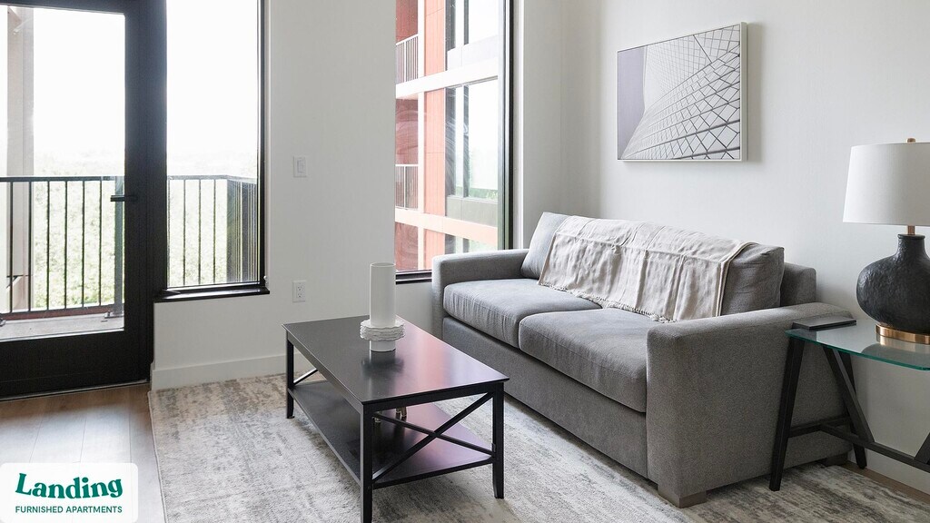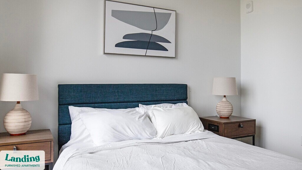 Landing offers flexible lease terms from weeks to months. Please always visit our website or contact us for the latest pricing & availability. Stay longer, save more: 6-Month Minimum base rent: starts at $3159/mo 12-Month Minimum base rent: starts at $2927/mo Landing offers flexible leases across a network of over 35,000 fully-furnished apartments throughout 375+ cities so you can rent on your terms, practically anywhere, and avoid the hassle of paying deposits or application fees. Visit to learn about all the benefits of a Landing membership, see our competitive up-to-date pricing, explore available apartments, take virtual tours, and make reservations online without jumping through traditional rental hoops. Landing's apartments at Poplar House are designed for comfortable, easy living, with the ability to stay as long as you like. Experience living with Landing Every apartment is outfitted with all the modern essentials including: custom-designed furnishings, a fully-equipped kitchen with deluxe stainless steel appliances, a gourmet coffee maker, premium linens, Smart TVs, and incredibly fast, reliable internet for working from home. When you live with Landing, you'll enjoy a hassle-free experience with the added benefit of 24/7 access to our dedicated member experience team. Some of the nitty-gritty: a background check and proof of income are required; we're completely smoke-free; bundled utility packages and pricing vary based on length of stay; pet-friendly options available; listed price reflects a 12-month minimum stay.