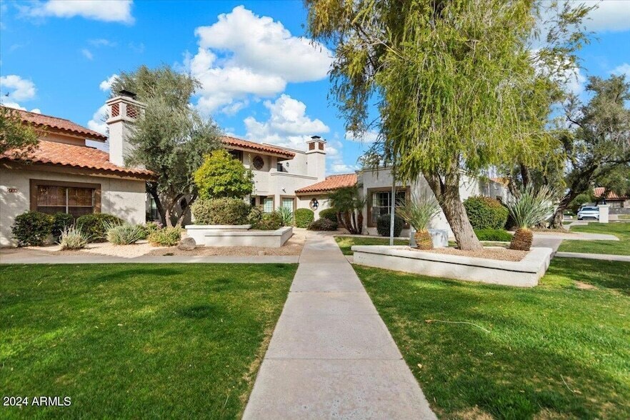 IMMACULATE & Well Kept Tasteful 2 Bedroom/2 Bath Single Level TOWNHOME ... Wonderful End Unit steps from Community Tennis Court, Pool/Spa, Walking/Bike Path, and more ... Well Maintained Quiet Community with Grass next to the Indian Bend Greenbelt and Golf Course ... Attached 2 CarGarage with Storage includes Electric Auto Charger, inside Laundry, Safeguard Hardwired SecuritySystem can be activated by Tenant.