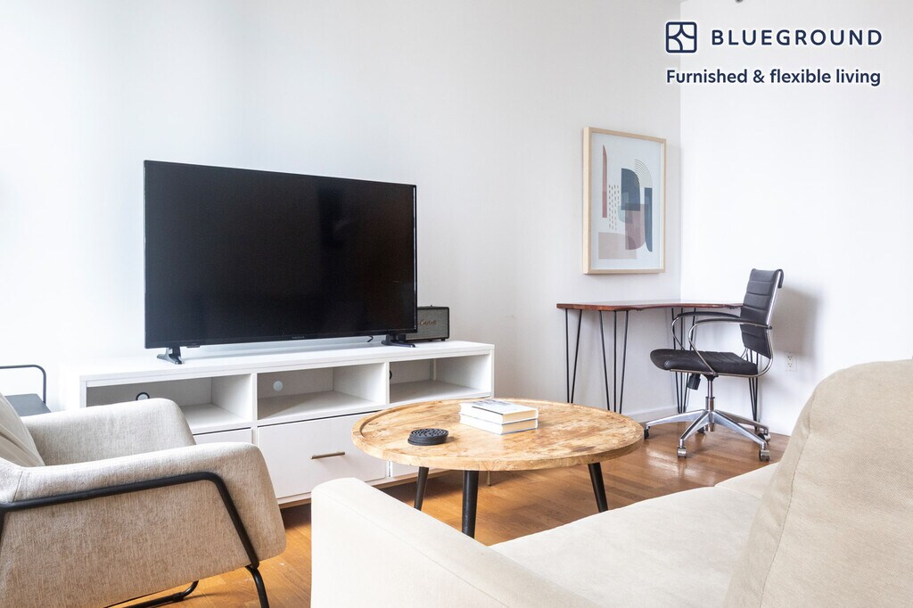 Show up and start living from day one in New York with this cozy one bedroom Blueground apartment. You’ll love coming home to this thoughtfully furnished, beautifully designed, and fully equipped Hell's Kitchen home with stunning views over the city. (ID #NYC1861) The advertised rate of $4,570/month is the lowest available price, based on a 1 month(s) and 29 day(s) stay with a move-in date of February 1, 2026. If you’re looking for a 1-year stay, the rate is $4,920/month. Rates vary depending on the duration of stay, season, and other parameters. For exact pricing and additional pricing components, please visit our website and enter your desired move-in and move-out dates. The rate is applicable when billed upfront; it can be higher if billed in multiple payments. Brokers are welcome to reach out. Were you looking for an unfurnished lease? Try Blueground instead and upgrade from unfurnished to furnished living: - Furnished at rates comparable to unfurnished - No setup or furniture costs - save thousands - Move-in ready - save time, just bring your suitcase Designed with you in mind Gorgeous furniture, fully equipped kitchen, smart TV, and a premium wireless speaker are just a few of the amenities you’ll find inside this one bedroom apartment. Ideally located in New York, you’ll find a lot to love outside as well. When you’re ready to relax, you’ll be happy to discover every Blueground bedroom comes with superior quality mattresses, luxury linens, and cozy towels. We handle everything so you can simply show up and start living. This apartment also offers in-apartment laundry. Sleeping arrangements Queen Bed, 63in/160cm Amenities Building amenities unique to this one bedroom apartment include an on-site: - Basketball Court - BBQ Area - Doorman - Dryer - Elevator - Washing machine - Media room - Pets allowed Arrival and ongoing support The entire apartment is yours to enjoy! Throughout your stay, you’ll have access to our Client Experience team through the Blueground App. You can schedule additional cleanings, submit maintenance requests, and view our neighborhood recommendations with just a few taps. We’ll share all details upon confirmation of your stay. Other things to note Building amenities may have an extra cost. This Blueground apartment has flexible lease options, allowing you to book it for one month, a year, or more. Pets are welcome, though weight limits and breed restrictions apply and may incur fees. Brokes CYOF. We take great pride in ensuring every photo displayed is shot in our own units with our actual furnishings. That said, we regularly refresh our decor and furniture arrangement, which may differ from what’s pictured. [SI]