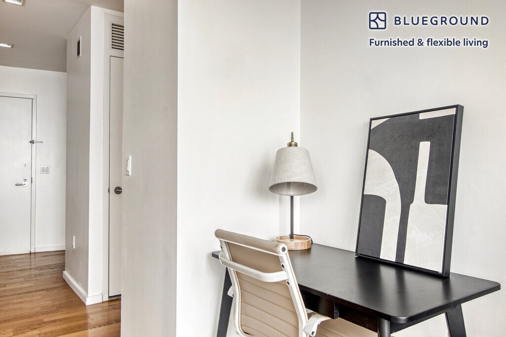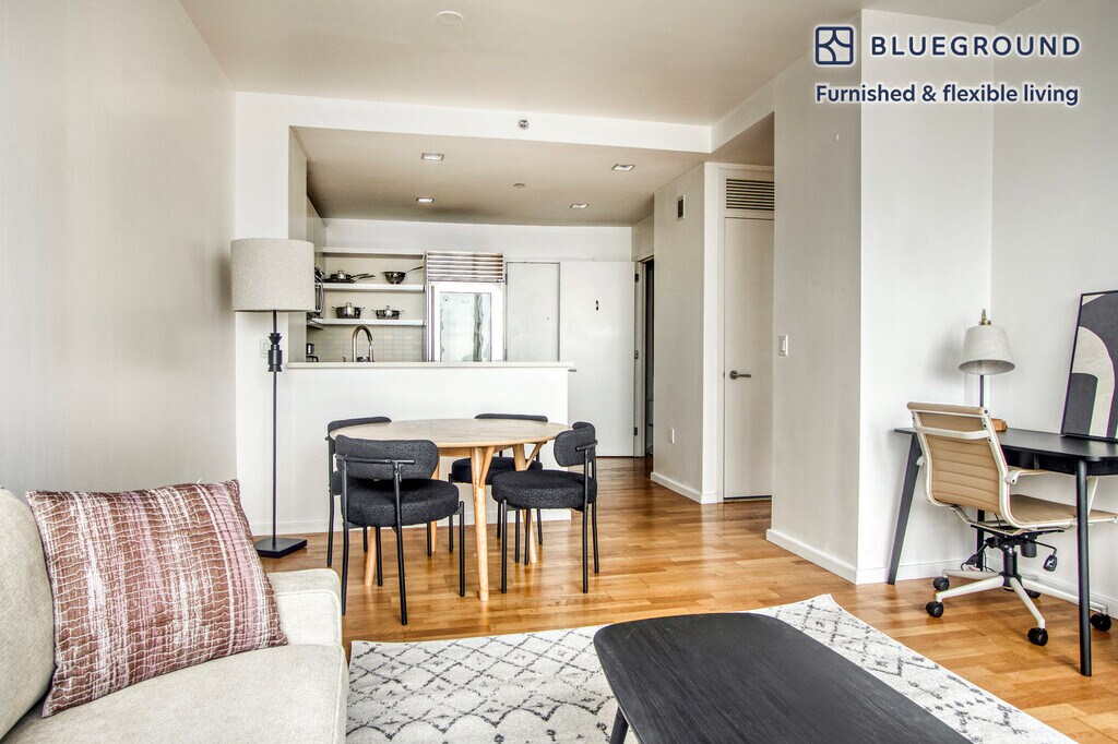 Show up and start living from day one in New York with this lovely two bedroom Blueground apartment. You’ll love coming home to this thoughtfully furnished, beautifully designed, and fully equipped Hell's Kitchen home with stunning high floor views over the city. (ID #NYC1857) The advertised rate of $5,480/month is the lowest available price, based on a 1 month(s) and 20 day(s) stay with a move-in date of November 18, 2025. If you’re looking for a 1-year stay, the rate is $7,440/month. Rates vary depending on the duration of stay, season, and other parameters. For exact pricing and additional pricing components, please visit our website and enter your desired move-in and move-out dates. The rate is applicable when billed upfront; it can be higher if billed in multiple payments. Brokers are welcome to reach out. Were you looking for an unfurnished lease? Try Blueground instead and upgrade from unfurnished to furnished living: - Furnished at rates comparable to unfurnished - No setup or furniture costs - save thousands - Move-in ready - save time, just bring your suitcase Designed with you in mind Thoughtfully designed with bespoke finishes, modern furnishings, and a fully equipped kitchen, you’ll enjoy that “I’m home” feeling with this Blueground apartment. Whether you’re lounging in your bright living room streaming the latest and greatest entertainment on the smart TV or premium wireless speaker, or getting some well-earned rest on the superior quality mattress with luxury linens, you’ll fall in love with everything this Hell's Kitchen apartment has to offer. This apartment also offers in-apartment laundry. Sleeping arrangements King Bed, 70.8in/180cm Queen Bed, 63in/160cm Amenities Building amenities unique to this two bedroom apartment include an on-site: - Basketball Court - BBQ Area - Doorman - Dryer - Elevator - Washing machine - Media room - Pets allowed Arrival and ongoing support The entire apartment is yours to enjoy! Throughout your stay, you’ll have access to our Client Experience team through the Blueground App. You can schedule additional cleanings, submit maintenance requests, and view our neighborhood recommendations with just a few taps. We’ll share all details upon confirmation of your stay. Other things to note Building amenities may have an extra cost. This Blueground apartment has flexible lease options, allowing you to book it for one month, a year, or more. Pets are welcome, though weight limits and breed restrictions apply and may incur fees. Brokes CYOF. We take great pride in ensuring every photo displayed is shot in our own units with our actual furnishings. That said, we regularly refresh our decor and furniture arrangement, which may differ from what’s pictured. [SI]