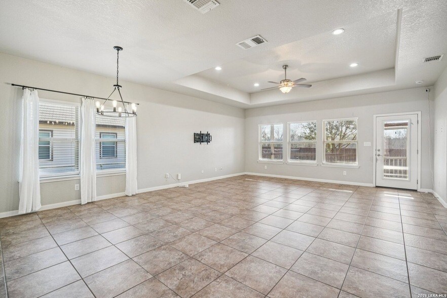 MOVE IN READY: This impressive floorplan features a large island kitchen, custom cabinets, granite countertops throughout, stainless appliances, decorative niches and ceiling treatments, and many custom touches. Large living/dining room in this open concept home. Spacious covered patio to enjoy the spring evenings. Close to Medical Center and Northside Schools in a quiet one way in/out neighborhood!