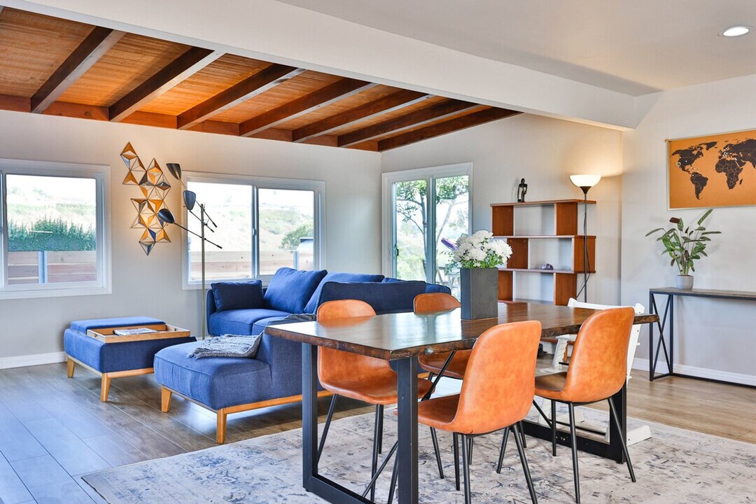Welcome to this peaceful canyon home in the heart of San Diego. This centrally located home comfortably sleeps 7. The modern kitchen boasts stone counters, stainless appliances, and a Keurig machine, all fully stocked with essentials for cooking. Relax in the family room with a big sofa and an 85-inch 4K TV and enjoy meals at the cozy dining table. Each of the 3 comfortable bedrooms is designed for comfort and functionality. Outside, soak in canyon views from the spacious deck, complete with a spa tub, gourmet BBQ, and real grass backyard. Experience comfort and convenience at this serene retreat, your ideal home away from home. There will be active construction at the front of the home/driveway from January 23 through February 29. Guests may experience limited noise during certain daytime hours and occasional disruption. The rates reflect this temporary construction and potential noise. Includes a desk for remote work. Registration Number: STR-12233L, 648850 [SI]