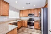 Tenga en cuenta que nuestras casas están disponibles por orden de llegada y no se reservan hasta que el arrendamiento sea firmado por todos los solicitantes y se cobren los depósitos de garantía. ¿Quieres hacer un tour por tu cuenta? Haga clic en el botón “Mostrarse” en la lista de esta casa o llame para inscribirse en una presentación autoguiada en el momento que mejor le convenga. Esta casa de alquiler en Las Vegas, Nevada, ofrece un enorme espacio de 199 metros cuadrados con cinco dormitorios amplios y tres baños. El diseño abierto en el primer piso lo impresionará de inmediato. Hay un ventilador de techo iluminado en la sala de estar y todas las ventanas cuentan con persianas blancas para que tenga mucha sombra y privacidad. Justo después de la sala de estar, encontrará la lavandería, que se abre al garaje adjunto. Los aspectos destacados de la cocina moderna incluyen una ventana sobre el lavabo doble, encimeras largas y electrodomésticos de acero inoxidable. Suba hasta el piso de arriba y pase el loft adicional para encontrar la enorme suite del dormitorio principal. Cuenta con su propio vestidor para un amplio espacio de almacenamiento, así como una bañera y una ducha en el baño en suite. ¡Solicite hoy mismo un recorrido!