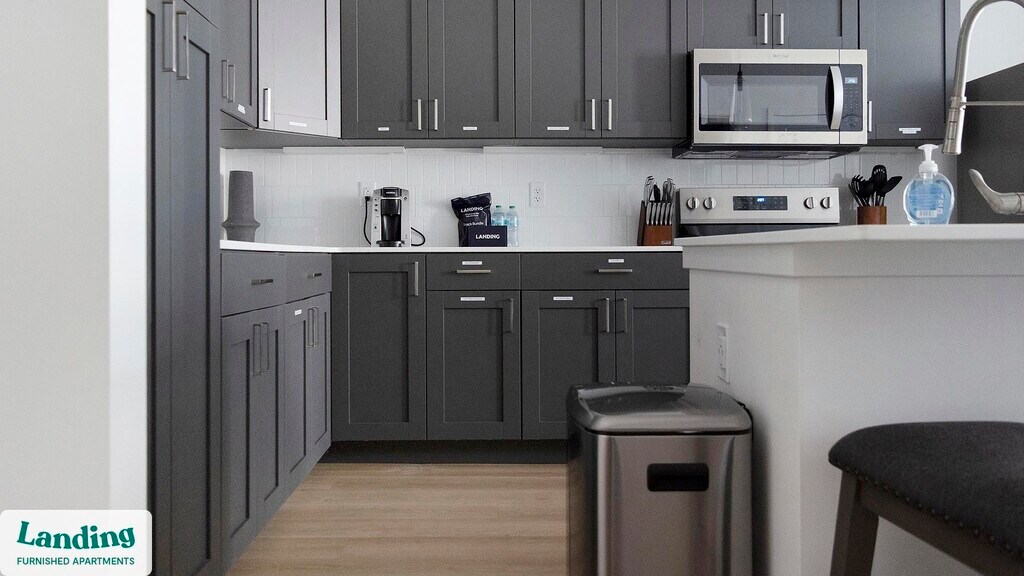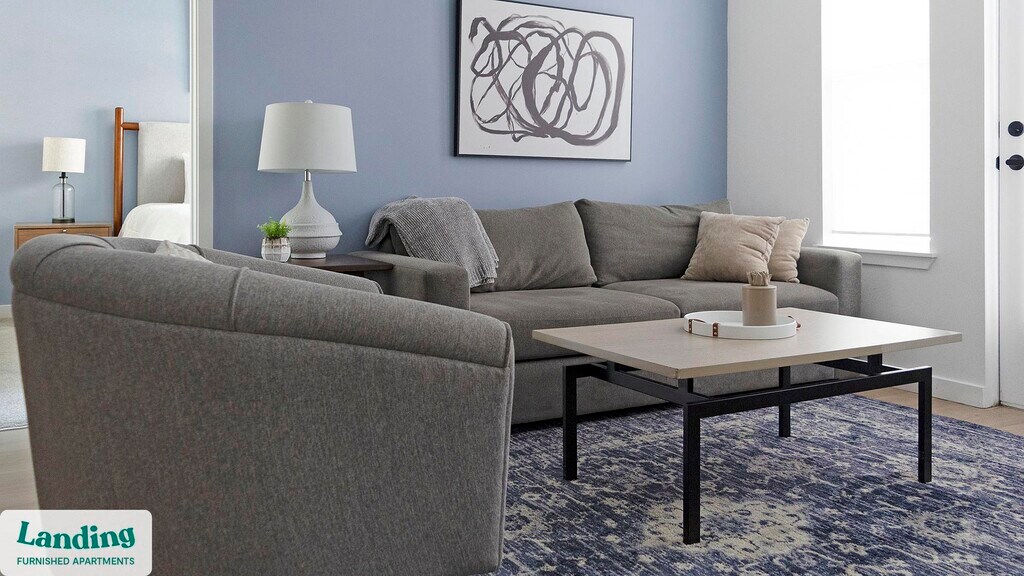 Landing offers flexible lease terms from weeks to months. Please always visit our website or contact us for the latest pricing & availability. Stay longer, save more: 6-Month Minimum base rent: starts at $2154/mo 12-Month Minimum base rent: starts at $1907/mo Landing offers flexible leases across a network of over 35,000 fully-furnished apartments throughout 375+ cities so you can rent on your terms, practically anywhere, and avoid the hassle of paying deposits or application fees. Visit to learn about all the benefits of a Landing membership, see our competitive up-to-date pricing, explore available apartments, take virtual tours, and make reservations online without jumping through traditional rental hoops. Landing's apartments at Ridgeview West are designed for comfortable, easy living, with the ability to stay as long as you like. Experience living with Landing Every apartment is outfitted with all the modern essentials including: custom-designed furnishings, a fully-equipped kitchen with deluxe stainless steel appliances, a gourmet coffee maker, premium linens, Smart TVs, and incredibly fast, reliable internet for working from home. When you live with Landing, you'll enjoy a hassle-free experience with the added benefit of 24/7 access to our dedicated member experience team. Some of the nitty-gritty: a background check and proof of income are required; we're completely smoke-free; bundled utility packages and pricing vary based on length of stay; pet-friendly options available; listed price reflects a 12-month minimum stay.