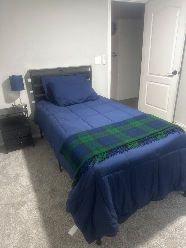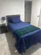 Property Id: 2410396 Small bedroom with new carpet, paint, and ceiling fan. Furnished with twin bed and dresser. Closet is long in length.