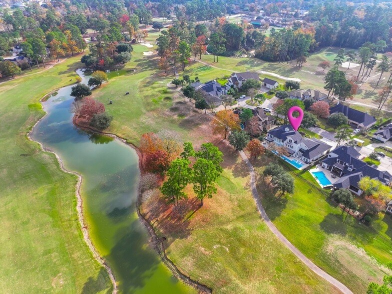 Stunning luxury home located on a premier golf course lot with tranquil lake views in Spring, Texas. This expansive residence offers 5,771 sq ft of refined living space featuring 5 bedrooms, 5 full bathrooms, and 2 half baths. The open, flowing floor plan is filled with natural light and showcases modern finishes throughout. The gourmet kitchen is equipped with stainless steel appliances and ample cabinetry, ideal for both everyday living and entertaining. The primary suite features a spa-like bathroom with soaking tub, oversized separate shower, and elegant finishes. All secondary bedrooms include private en-suite baths, providing comfort and privacy. Additional highlights include a spacious third-floor game room with half bath, a striking modern staircase, expansive windows overlooking the golf course and lake, a 3-car garage, and porte-coch re. This exceptional property offers luxury, space, and serene views in a highly desirable location.