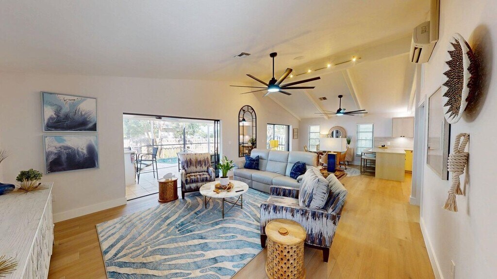 Discover your ultimate Gulf Coast escape at this spacious tropical retreat in the heart of North Naples highly sought-after Naples Park neighborhood, high and dry location, and just 2 short blocks (or a leisurely 20-minute stroll) from the iconic white-sandy shores of Vanderbilt Beach and the pristine beauty of Delnor-Wiggins Pass State Park! Nestled minutes from the excitement of Mercato's trendy dining and shopping, world-class 5th Avenue South, The Ritz-Carlton Naples, Waterside Shops, Coconut Point, Miromar Outlets, pickleball/tennis, golf nearby and endless Southwest Florida adventures. Step inside this beautifully furnished, open-concept single-family home boasting modern finishes and thoughtful updates throughout. The chef-inspired kitchen shines with sleek quartz countertops, premium stainless-steel appliances, and abundant storage—perfect for preparing seaside feasts or evening cocktails. Host up to 11 guests in comfort across 4 generously sized bedrooms: one luxurious king in the primary suite with a walk-in closet and private en-suite bath, plus four queen beds with a twin trundle for flexible sleeping arrangements and full-size washer & dryer. Every bedroom features its own Roku/YouTube TV for relaxed evenings. Three beautifully updated full baths with elegant tile showers ensure convenience for the whole group. Slide open the doors to your private outdoor sanctuary: an expansive 700 sq ft screened lanai (407 sq ft covered) ideal for morning coffee with ocean breezes, sunset cocktails, or family BBQs on the gas grill. Step into the refreshing plunge pool, or crank up the heat and unwind in the jetted hot tub. Gather at the raised outdoor conversation bar complete with gas grill and wine fridge—your personal slice of paradise awaits! Don't miss this rare chance to live the Naples dream—steps from world-famous beaches, surrounded by luxury and convenience, and ready for unforgettable vacations. Your tropical getaway starts here—book now and make memories in paradise!