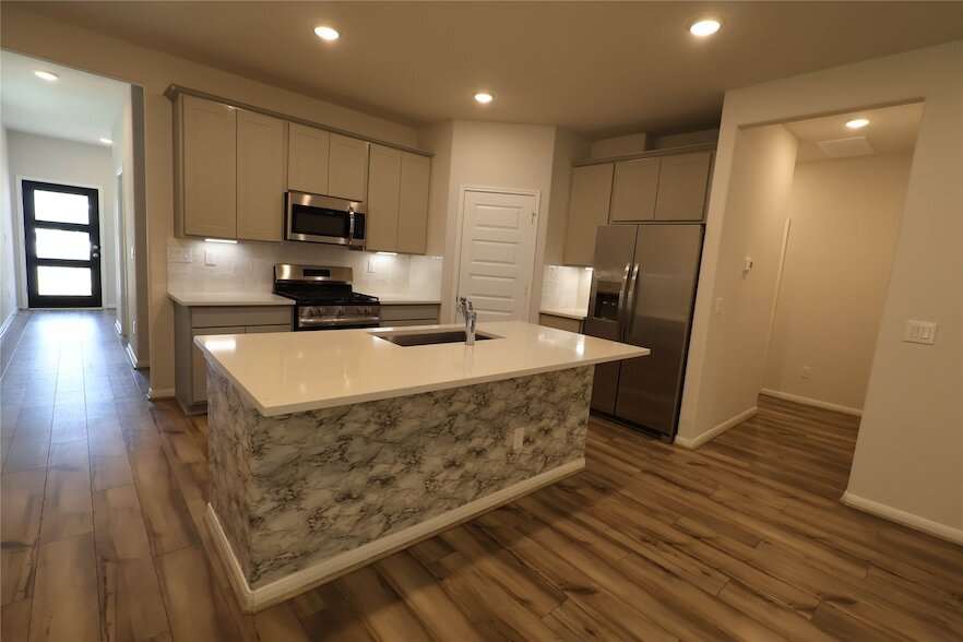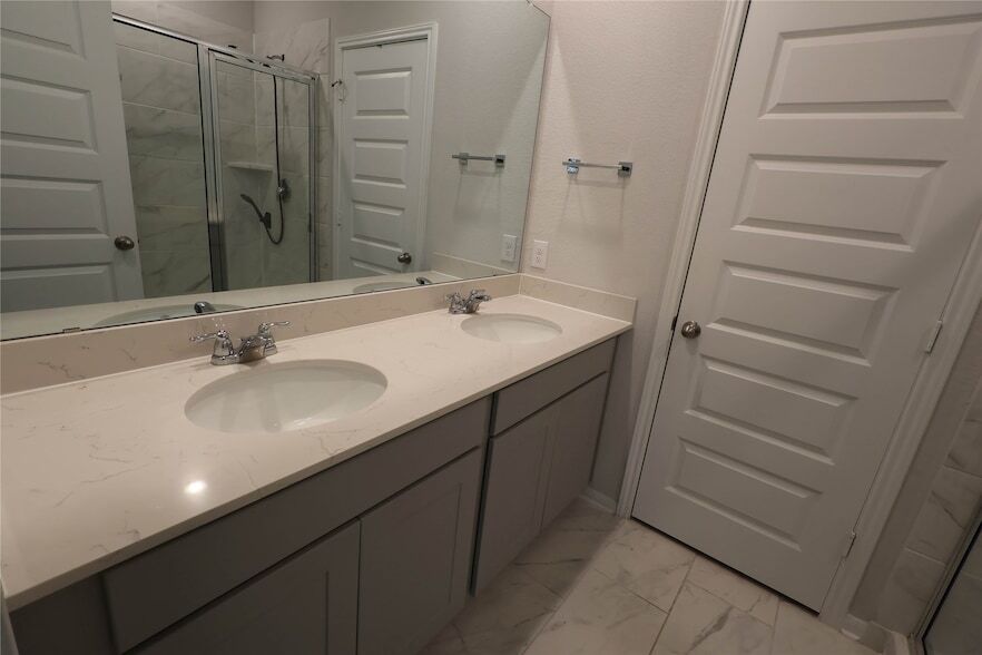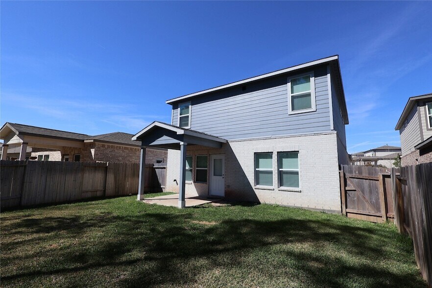 Welcome Home to Lakes at Black Oak! This barely lived in Davidson Homes San Marcos floorplan offers a 2-story, fully bricked design. The main floor features an open concept family and kitchen area, with the primary suite and guest room/bathroom also on this level. Upstairs, three additional bedrooms and another bathroom provide ample space. Each bedroom boasts large walk-in closets for storage. The oversized game room is perfect for family nights. Enjoy the covered patio and backyard with no direct back neighbors. All appliances are included. Located in the Magnolia Independent School District, this community offers a splash pad, playground, and more.