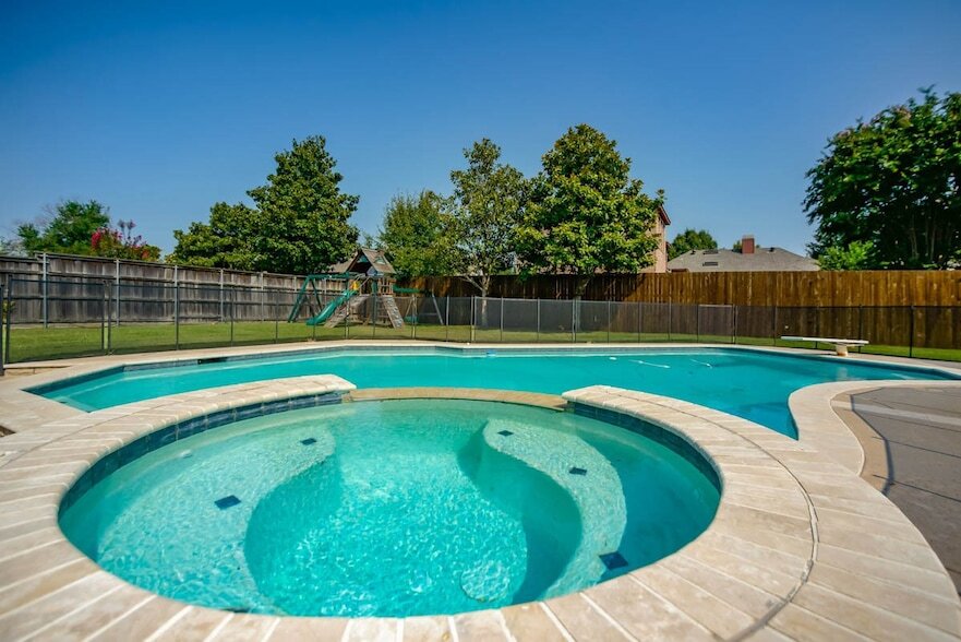 Move-In Special - Sign a 2-year lease and receive the first month's rent FREE! Short term lease available. Welcome to Your Private Oasis in Far North Dallas! Nestled on an expansive 0.34-acre lot, this beautifully upgraded 2,727 sq ft home offers the perfect blend of luxury, space, and functionality. Featuring 4 bedrooms, 3 full bathrooms, and 2 living areas, this home is a true retreat - complete with a heated pool and spa, lush landscaping, and thoughtful design throughout. Step inside to be greeted by a bright, open-concept layout, highlighted by a striking floor-to-ceiling fireplace, abundant natural light, and new LVP flooring throughout the home, with tile in the baths. The heart of the home, the chef-inspired kitchen, features stainless steel appliances, gas cooktop, granite countertops, and a large Eat-In Island, all seamlessly connected to the dining and living areas - perfect for entertaining or relaxing. The primary suite is generously sized and boasts a stunning newly remodeled bathroom with an oversized walk-in shower and two large walk-in closets. Three additional bedrooms are complemented by two fully updated baths, each designed with comfort and style in mind. The converted garage currently serves as a versatile game room or flex space - but can be easily converted back if preferred. Step outside to your private backyard oasis, featuring a huge backyard, complete with a heated swimming pool and spa, playground, and an oversized covered patio - ideal for outdoor gatherings or quiet evenings at home. Perfectly situated, this incredible home is just minutes away from DNT, SRT, 635, 75 and PGBT, providing you with unbeatable convenience and access to all your favorite destinations. No HOA! Don't miss your chance to lease this captivating retreat - schedule your showing today!