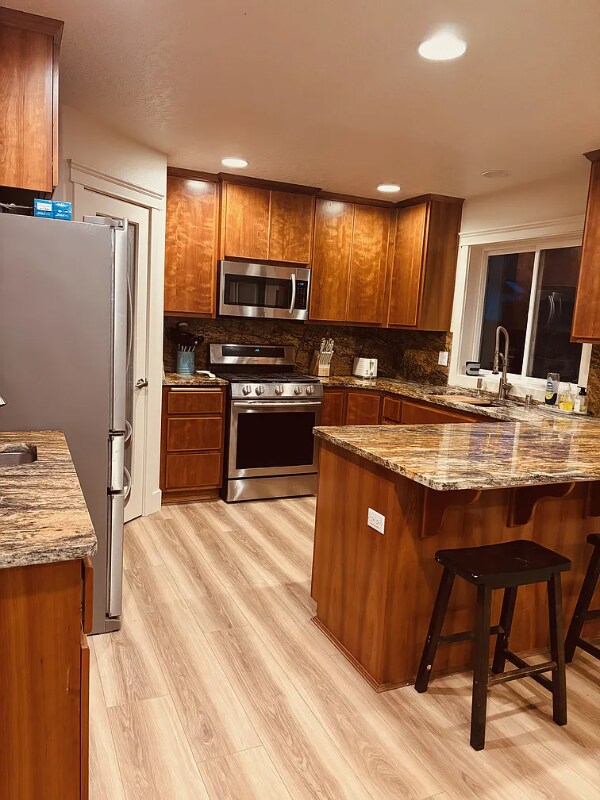 Property Id: 2242005 Welcome home to this serene and spacious 4-bedroom plus office, 2.5-bath residence just 200 yards from the stunning Columbia River and scenic riverfront bike path. Thoughtfully updated with fresh flooring and a clean, modern aesthetic, this home offers comfort, versatility, and an unbeatable location in one of Pasco's most desirable neighborhoods. Inside, enjoy a bright, open layout perfect for daily living or entertaining. Relax in the private hot tub, prepare meals in the gourmet kitchen, or unwind in the fully fenced backyard. A 1,000 sq ft detached back unit provides flexible space for a gym, game room, studio, workshop, or storage. Outdoor enthusiasts will love the 23-mile riverfront trail, boating, kayaking, fishing, and nearby events including hydroplane races, air shows, and the Ironman Triathlon. This exceptional home blends comfort, convenience, and recreation in one ideal package. A refundable security deposit is required and will be collected prior to your stay.