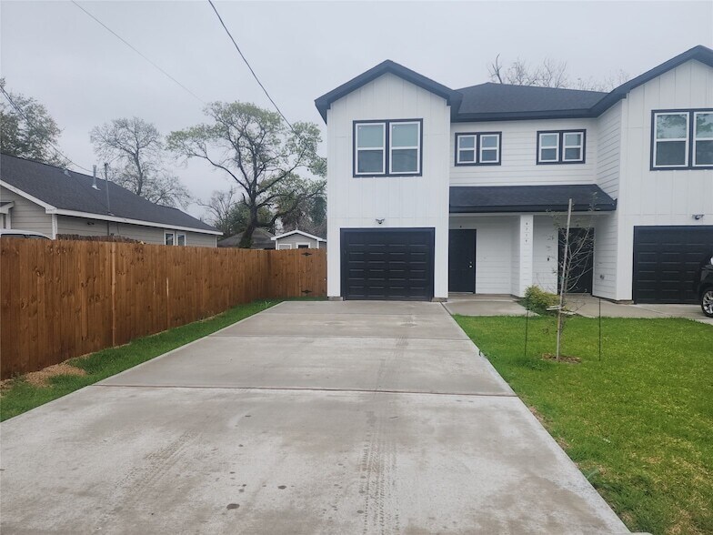Introducing 6719 Roanoke St, Unit A, a beautifully designed home offering 3 bedrooms, 2.5 bathrooms, a private backyard, an attached garage, and driveway parking for up to four vehicles. Conveniently situated near I-69, Beltway 8, Downtown Houston, and Bush Intercontinental Airport (IAH), this property blends comfort with modern living. Inside, the home features a bright open-concept layout filled with natural light and stylish finishes throughout. The kitchen includes sleek cabinetry, quartz countertops, and the added benefit of a dedicated dining area, a feature not often found in similar homes. The spacious primary suite offers high ceilings, a luxurious ensuite bathroom with dual sinks, and a walk-in closet. The additional bedrooms provide flexible space that can easily serve as guest rooms, family space,