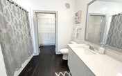 Feel at home in this apartment located in the trendy Edgewood community of East Atlanta. This fully upgraded apartment features a GE side-by-side refrigerator or a Samsung French door refrigerator, upgraded vinyl plank flooring, quartz countertops, a GE dishwasher, a stainless steel kitchen faucet, a GE 30’ electric range, subway tile backsplash, a full-size GE washer and dryer, a large patio with city or courtyard views, walk-in closets, and an open floor plan. The Edge features a resort-style heated swimming pool, fire pit and grill area, secured private garage parking for residents, electric car charging stations, a business center and conference room, a clubroom with Wi-Fi, big screen TVs, a kitchenette, and seating/dining areas, and a club-quality fitness center. Located on the Beltline, this apartment is near shops and dining on the first floor of the building near the Beltline access. [SI]