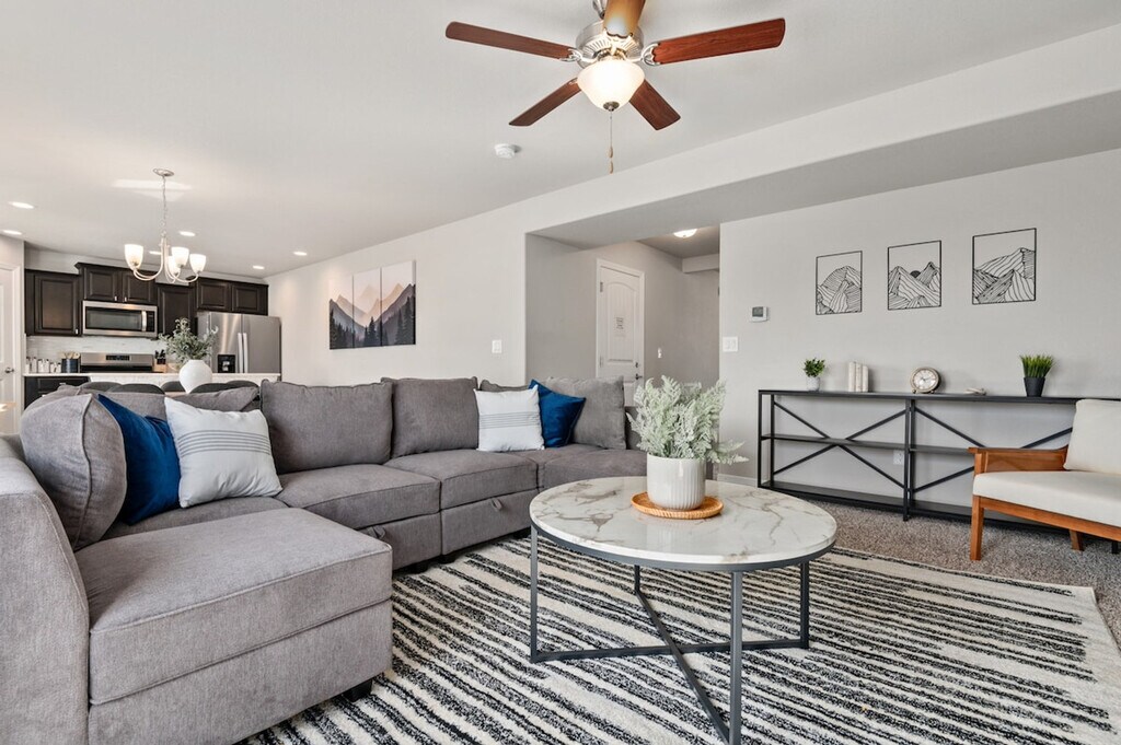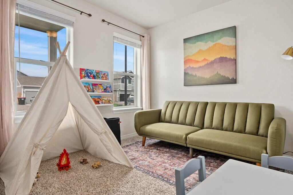 The advertised rate of $5,635/month is the lowest available price, based on a 30 day(s) stay with a move-in date of August 3, 2026. Rates vary depending on the duration of stay, season, and other parameters. For exact pricing and additional pricing components, please visit our website and enter your desired move-in and move-out dates. The rate is applicable when billed upfront; it can be higher if billed in multiple payments. Feel at home in this 3,300 sq/ft single-family home located in a newly developed neighborhood in Southern Colorado Springs. This home features an open-concept living room, kitchen, and dining room, providing a warm and welcoming atmosphere. The fully stocked kitchen and breakfast island are perfect for food lovers. The home includes an Air Force-themed garage game room with a 65” TV, darts, foosball, shuffleboard, and ping pong. There is also a fenced-in yard with a fire pit, charcoal grill, corn hole, football, and a walk-out deck with outdoor furniture. Families will appreciate the kids' play area, high chair, and crib. The upper level has four bedrooms and two full bathrooms, including one in the master bedroom, as well as laundry. The main level has a secondary living room with a kids' play area and a green sleeper futon. Two pets maximum are allowed per stay for a fee. Located a short drive from tourism, adventure, and leisure activities, this home is also within a 10- to 30-minute drive of Big Johnson Reservoir, Butts Army Airfield (Fort Carson), National Museum of WWII Aviation, Cheyenne Mountain State Park, Cheyenne Mountain Zoo, Garden of the Gods, and the Air Force Academy. It is also a 10-minute drive to restaurants, 15 minutes to the airport, and 25 minutes to downtown Colorado Springs. The community park is a short, quiet, and safe walk away. Quiet hours are between 10:00 PM and 7:00 AM. Smoking (cigarettes, cigars, vapes, and/or marijuana) is not allowed at this property, inside or outside. Failure to follow this rule will result in eviction and forfeiture of all rental and cleaning fees, even if discovered after your stay. Unauthorized parties are not allowed. Any complaints from the neighbors or noise violations responded to by local police could result in immediate cancellation of the reservation and forfeiture of all fees. Check-in time is 4:00 PM and check-out time is 10:00 AM. Late check-outs are not allowed unless authorized in writing in advance, and unauthorized late check-outs will incur a fee of $100 per hour. [SI]