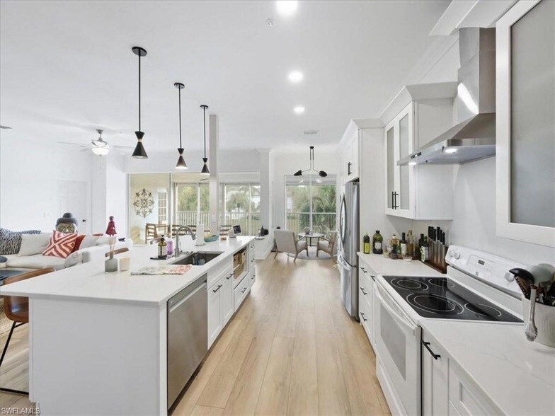 Completely remodeled seasonal rental in Calusa Bay. This beautifully furnished second-floor unit offers southwest exposure with stunning lake views and abundant natural light. The redesigned kitchen features new appliances, custom cabinetry, and sleek countertops. The primary suite includes a king bed and serene water views, while the second and third bedrooms offer queen beds and TVs in every room. Enjoy resort-style amenities including clubhouse, fitness center, pools, tennis courts, and scenic walking trails. Prime Naples location near Mercato, Galleria at Vanderbilt, Waterside Shops, dining, and world-famous beaches.
