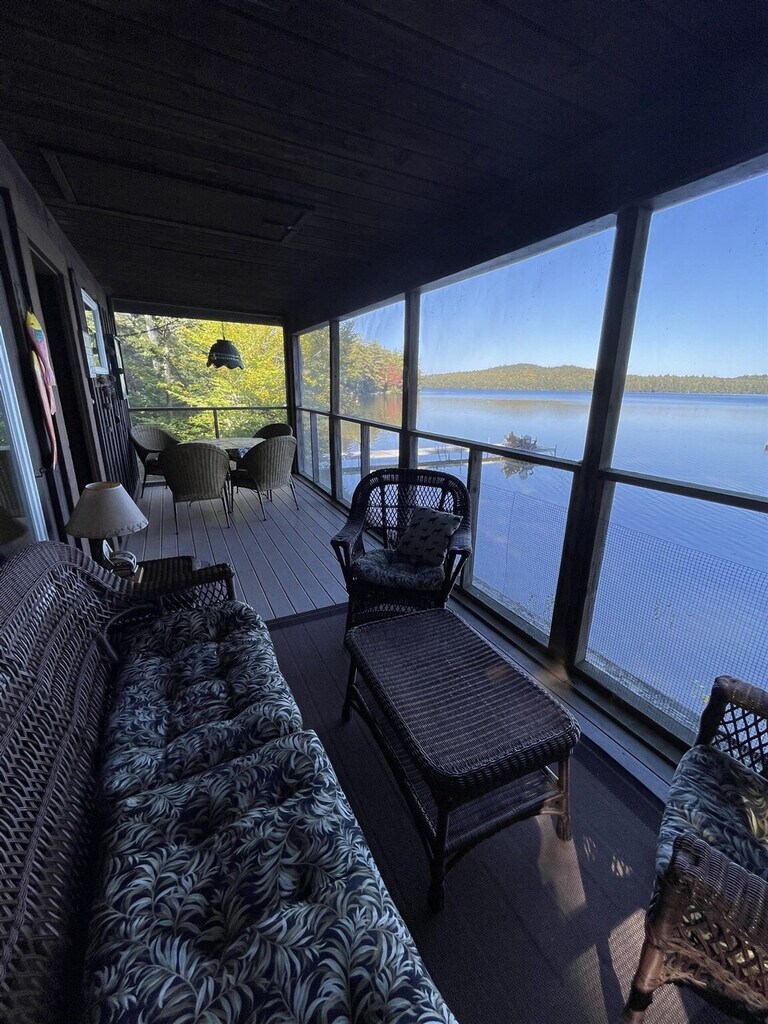 Welcome to this charming 1-bedroom, 1-bathroom cottage on the shores of Peabody Pond, where you can feel at home surrounded by nature's beauty. This cozy retreat offers a serene escape with its private location right at the water's edge, providing stunning views and the soothing sounds of the brook that borders the property. The cottage features a screen porch, a large stone fireplace, and an open living and dining area, making it a perfect getaway spot. The cottage is thoughtfully designed with a well equipped kitchen, a lovely view, and a relaxing atmosphere. Enjoy the convenience of internet access and a phone for local and emergency calls. The property includes a nice dock and swim float, along with two 8ft kayaks for your enjoyment. Please note that guests must provide their own life jackets. One pet is welcome with a $125 fee, but please ensure no dogs are on the furniture. Linens and towels are not provided, but are available to rent at our office. The property also includes a small portable fire pit and a canoe for your use, though guests must provide their own life jackets. Nestled just steps from the shore, this cottage offers a level lot with sandy bottom frontage, perfect for swimming and water activities. The area is ideal for nature lovers, with the cry of the loons and beautiful sun and moon rises enhancing the tranquil setting. This property has an occupancy limit of 5 guests. Smoking is not allowed, and the use of jet skis or personal watercraft is prohibited. The cottage is equipped with a TV and DVD player, and the owner provides a DVD library for entertainment. [SI]