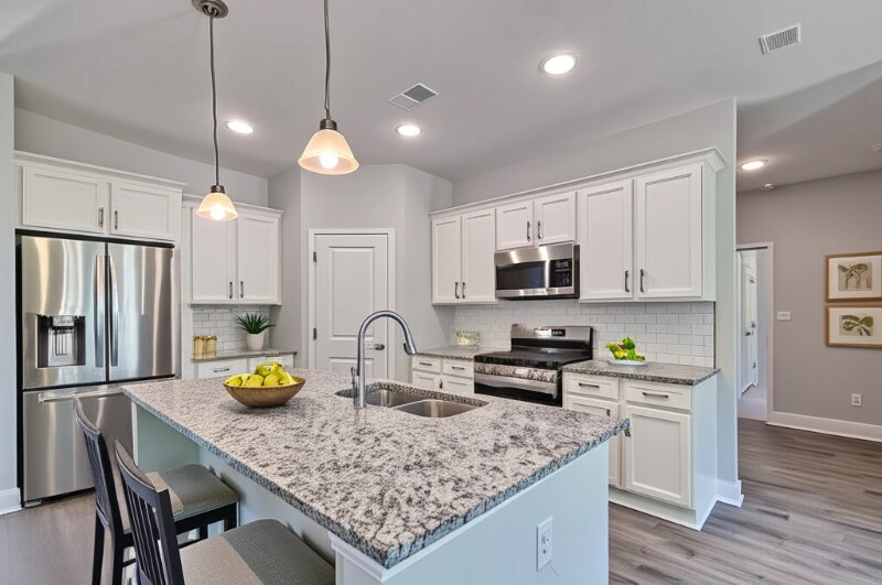 Property Id: 2244435 This Arcadia plan features five true bedrooms, three full bathrooms, and versatile living space to fit your lifestyle. A guest bedroom, full bath, and flex or office space are located on the main level, while the open concept design flows seamlessly through the family room, dining area, and upgraded kitchen. You'll love the granite countertops throughout, shaker cabinets, tile backsplash, stainless steel appliances, and durable luxury vinyl plank flooring. Upstairs, the spacious owner's suite is a true retreat with a soaking tub, separate shower, dual vanities, private linen closet, and a large walk-in closet. Bedrooms three, four, and five share a full bath and are connected by a flex space perfect for play, study, or relaxation. The laundry room is also conveniently located on the upper level. This home also features a two car garage, beautiful Hardie plank siding with stone accents, and the ExecTech smart home package.
