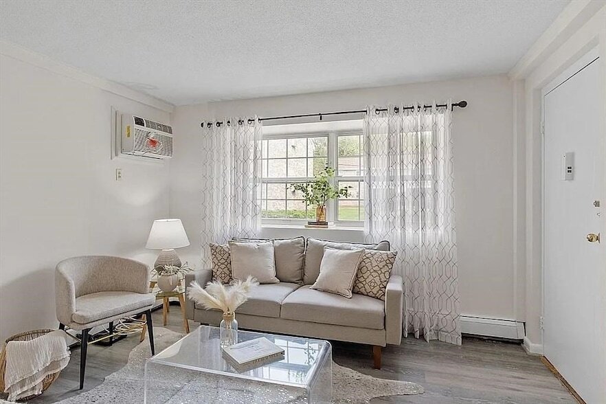 Available November 16th Private and charming studio awaits you on the first floor of Washington Park. This sunlit 400 sq ft space has been tastefully updated with fresh flooring in the generous living area. The spacious eat-in kitchen features elegant granite countertops with sliding doors leading to a covered patio perfect for morning coffee or evening relaxation. Four roomy closets provide ample storage, and the unit includes a recently installed wall A/C unit and a full bathroom with tub. Enjoy access to an inground pool, tennis courts, and on-site laundry in this sought-after Andover community. Conveniently located near highways, shopping, restaurants, schools, MBTA, and walkable to downtown. Hot water included. 2 unassigned parking spaces. No pets allowed. $250 move-in/move-out fees.First Option- First month, Security Deposit. NO BROKER'S FEE!Second Option - First month, Cashless Security Deposit. NO BROKER'S FEE!