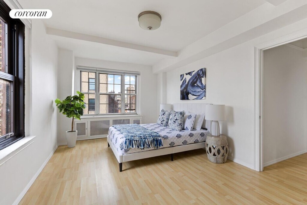 Perched on one of the most picturesque and desirable blocks in Brooklyn Heights, Apartment 10C at 70 Remsen Street is a beautifully proportioned, sun-drenched one-bedroom co-op with elegant pre-war character and sweeping open views. A gracious foyer with a large coat closet sets the tone for this spacious home, leading into an expansive living and dining area featuring high ceilings, classic moldings, and three oversized north-facing windows that bathe the room in natural light. The updated, windowed kitchen opens to the entertaining space and is outfitted with marble countertops, custom cabinetry, and a dishwasher-perfect for both casual dining and hosting guests.Down the hall, a generous walk-in closet provides excellent storage before entering the serene corner bedroom, which enjoys both north and west exposures with a view toward Lower Manhattan. The en-suite bathroom has modern finishes and a linen closet adds even more function.Built in 1928 by renowned architect H.I. Feldman, 70 Remsen Street is a striking neo-Romanesque co-op known for its intricately carved stone facade, gargoyles, and grand arched entryway. Originally a hotel, the building was converted to a full-service cooperative with 24-hour doorman, live-in superintendent, central laundry, bike storage, and pet-friendly policies. Ideally located just moments from the Promenade, Brooklyn Bridge Park, Montague Street shopping and dining, and multiple subway lines (2/3/4/5/A/C/R), The Remsen offers both convenience and timeless architectural beauty.