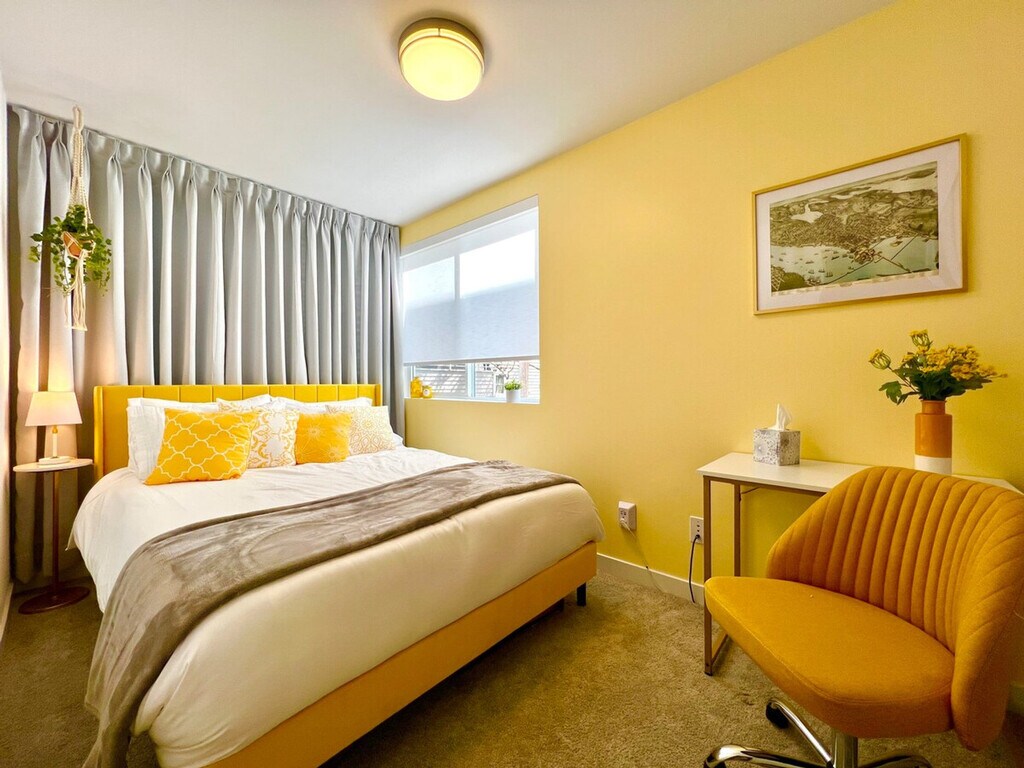 Explore vibrant Capitol Hill from this centrally located townhome with a Walk Score of 96. This stylish four-story townhome, including a rooftop deck, offers a quiet retreat with no steps at the entrance. The townhome complex is situated off a side street, away from the main road, ensuring a peaceful stay. The home features two bedrooms, two bathrooms, and spans 970 sqft, making it perfect for group travel. Enjoy a piece of Seattle in the heart of Capitol Hill, just one block away from dining, shopping, and nightlife. The first floor includes a living room with a queen sofa bed, a 58'' Smart TV, a fully stocked kitchen, and dining area, all air-conditioned. The second floor houses a yellow bedroom with a queen bed, a hallway bath with a bathtub and shower combo, and laundry facilities. The third floor features an orange and blue room with a queen bed, a 50'' Smart TV, and an ensuite bathroom with a shower, also air-conditioned. The fourth floor boasts a rooftop patio with outdoor seating, perfect for al fresco experiences. Free street parking with a city-issued guest parking permit is provided, but it's first-come-first-served due to the densely populated area. Paid public parking is available directly across the street from the townhome complex for a guaranteed spot. Well-trained pets are welcome with a fee of $50 per night, and additional guest fees are $25 per person per night for more than four guests, up to a maximum of six guests. Capitol Hill is the epitome of 21st-century Seattle: young, high-tech, and culturally adventurous. It's the epicenter of coffee culture, home to clubs that spawned the grunge movement, and the site of some of Seattle's biggest events, like Block Party and the Pride Parade. With a high walk score, many dining, shopping, and entertainment options are within walking distance. The townhome is less than a 10-minute walk to the Link Light Rail Capitol Hill Station, providing easy access to other areas in Greater Seattle. A 5-minute drive takes you to downtown Seattle, and Volunteer Park is just three blocks away. This townhome is not handicap-friendly and requires comfort with stairs due to its multiple stories. Self-check-in is available with a code provided 48 hours before arrival. The property enforces quiet hours between 10 pm and 8 am, and there is a strict no parties and no smoking policy, with a $500 fine per violation. Pets are welcome, but they should not be allowed on furniture or linens, and owners must pick up after them. The townhome is equipped with high-speed internet up to 400 Mbps, making it suitable for streaming or remote work needs. A Smart TV is available for entertainment, and the home features big windows that allow plenty of natural light, creating a pleasant work environment. Registration Number: STR-OPLI-23-000490 [SI]