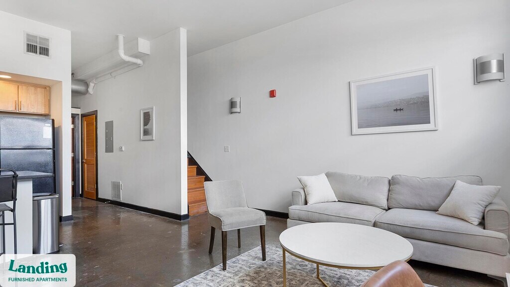 Landing offers flexible lease terms from weeks to months. Please always visit our website or contact us for the latest pricing & availability. Stay longer, save more: 6-Month Minimum base rent: starts at $1425/mo 12-Month Minimum base rent: starts at $1525/mo Landing offers flexible leases across a network of over 35,000 fully-furnished apartments throughout 375+ cities so you can rent on your terms, practically anywhere, and avoid the hassle of paying deposits or application fees. Visit to learn about all the benefits of a Landing membership, see our competitive up-to-date pricing, explore available apartments, take virtual tours, and make reservations online without jumping through traditional rental hoops. Landing's apartments at Hopper Lofts are designed for comfortable, easy living, with the ability to stay as long as you like. Experience living with Landing Every apartment is outfitted with all the modern essentials including: custom-designed furnishings, a fully-equipped kitchen with deluxe stainless steel appliances, a gourmet coffee maker, premium linens, Smart TVs, and incredibly fast, reliable internet for working from home. When you live with Landing, you'll enjoy a hassle-free experience with the added benefit of 24/7 access to our dedicated member experience team. Some of the nitty-gritty: a background check and proof of income are required; we're completely smoke-free; bundled utility packages and pricing vary based on length of stay; pet-friendly options available; listed price reflects a 12-month minimum stay.