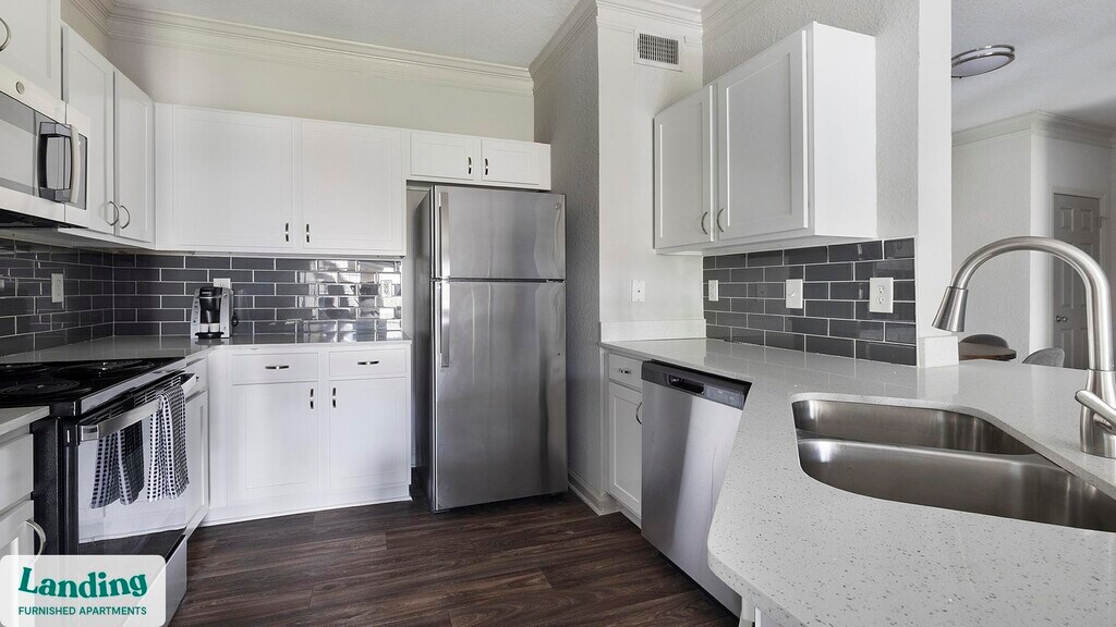 Landing offers flexible lease terms from weeks to months. Please always visit our website or contact us for the latest pricing & availability. Stay longer, save more: 6-Month Minimum base rent: starts at $2625/mo 12-Month Minimum base rent: starts at $2406/mo Landing offers flexible leases across a network of over 35,000 fully-furnished apartments throughout 375+ cities so you can rent on your terms, practically anywhere, and avoid the hassle of paying deposits or application fees. Visit to learn about all the benefits of a Landing membership, see our competitive up-to-date pricing, explore available apartments, take virtual tours, and make reservations online without jumping through traditional rental hoops. Landing's apartments at Elevate Eagles Landing are designed for comfortable, easy living, with the ability to stay as long as you like. Experience living with Landing Every apartment is outfitted with all the modern essentials including: custom-designed furnishings, a fully-equipped kitchen with deluxe stainless steel appliances, a gourmet coffee maker, premium linens, Smart TVs, and incredibly fast, reliable internet for working from home. When you live with Landing, you'll enjoy a hassle-free experience with the added benefit of 24/7 access to our dedicated member experience team. Some of the nitty-gritty: a background check and proof of income are required; we're completely smoke-free; bundled utility packages and pricing vary based on length of stay; pet-friendly options available; listed price reflects a 12-month minimum stay.
