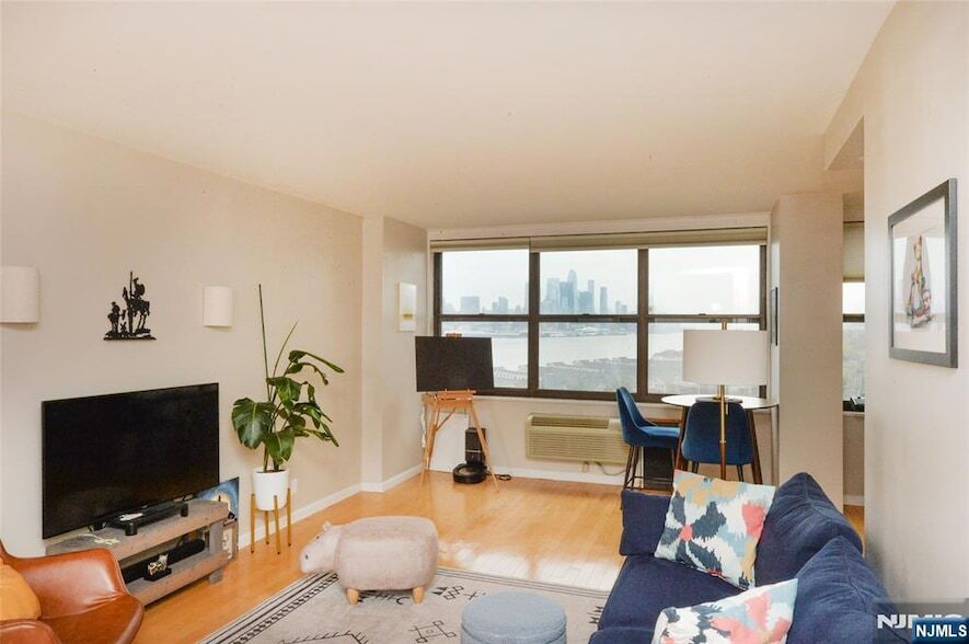 Experience elevated living in this fully renovated one-bedroom, 1.5-bath home with sweeping NYC skyline views, including the Empire State Building and One World Trade, stunning by day and night. Bright and airy, open concept, it features hardwood floors, remote-controlled blinds, California closets, abundant natural light and unit includes heating and A/C. Located in the Galaxy Towers, enjoy full-service living with all utilities included (excludes internet), 24-hour concierge and security services, indoor and outdoor pools, hot tubs, a private spa, and a fully equipped fitness center with premium equipment and saunas. Additional features include tennis and pickleball courts, beautifully landscaped outdoor spaces, conference facilities, and dedicated children TMs rooms, creating a truly well-rounded living experience. Ideally positioned for effortless commuting and access to everything the city has to offer, this home seamlessly blends serene retreat with urban accessibility. Optional parking: $120/month; key fob: $25.