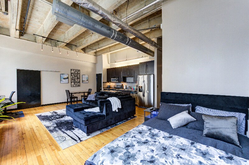 Property Id: 2039241 Spacious 890 sq ft furnished studio in downtown Houston. Designed for 30+ day stays with all the comforts of home—queen bed, full appliance kitchen, walk-in closet, open pantry, in-unit laundry, fast Wi-Fi, Smart TV, dedicated office with wide adjustable height desk and portable monitor & lap/bed mini desk. Air Mattress for separate sleeper. Secure building with gym, lounge, rooftop, and secured package area. Steps from MetroRail, businesses, Med Center, dining, nightlife, museums, and parks.