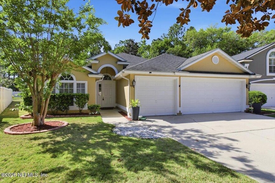 Beautiful home located in popular Julington Creek Plantation! This open floor plan is perfect for gathering, whether you're cooking in the kitchen or relaxing by the fireplace. The 3-car garage offers plenty of space, including room for a special vehicle, extra storage, or hobbies.This home features 4 bedrooms, 2 baths, an open foyer, sitting room, dining room, eat-in kitchen, living room, laundry room, and a split-bedroom layout. The private primary suite includes dual sinks, a spa tub, & a walk-in closet, while the three additional bedrooms are separated for added privacy & share a full bath. Vinyl plank flooring runs throughout the home. The kitchen is equipped with stainless steel appliances, including a French-door refrigerator, flat-top stove, and dishwasher. Pets are welcome with some breed restrictions. Residents enjoy access to two fabulous amenity centers featuring ball fields, tennis, pickleball, swimming pools, a skateboard park, dog parks, Located in a highly regarded school district, with the elementary school within walking distance. The beaches, downtown Jacksonville, surrounding counties, historic St Augustine and military installations are just minutes away.