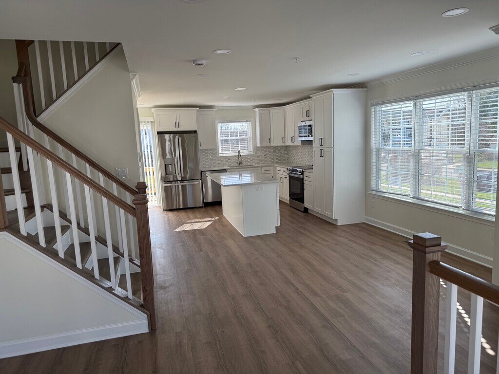 Property Id: 2439464 Newly Remodeled End Unit Townhome available for rent. Upstairs features a Master bedroom which has a walk in closet and bathroom with a double vanity and spacious walk in shower. Upstairs has two other bedrooms and a full hall bath with tub and skylight. Kitchen is open and features new appliances, backsplash, under cabinet lighting and a slider door to a deck. Basement level has a bedroom or rec room with a wardrobe closet, bathroom with walk in shower, and door to the backyard. Basement level also has a laundry closet with washer and dryer, storage closet and access to the garage. The pool is right across the street along with plenty of guest parking. All new LVP and tile flooring throughout. Walking trails, garden, and playground are all part of this great community. Close access to Westview Shopping, I-270/ I-70 and downtown Frederick. This is essentially a NEW townhouse now that the remodel is complete.