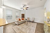 Experience upscale, quiet living in this custom 3 Bedroom, 2.5 Bath townhome, perfectly situated near the South Texas Medical Center. The gourmet kitchen is a chef's delight, featuring granite countertops, a tiled backsplash, recessed lighting, a deep undermount sink with a pull-out faucet, and modern brushed nickel plumbing fixtures. The home boasts elegant wood-look plank tile flooring throughout the main areas, complemented by upgraded carpet in the bedrooms, and includes a luxurious walk-in master shower. Added conveniences include full-size washer and dryer connections and a large 2-car garage. Step outside to relax on the covered patio or enjoy the nice-sized, private fenced backyard. The townhome is part of a small, quiet community that offers a tranquil setting by backing up to a peaceful ranch.