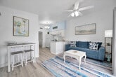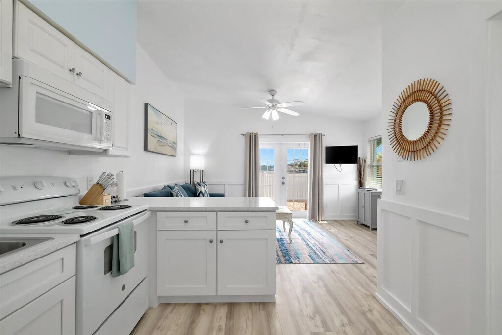 Feel at home in this updated 1-bedroom bungalow in Indian Rocks Beach, perfectly set along the peaceful Intracoastal Waterway. This ground-floor apartment accommodates up to 4 guests. This apartment features vaulted ceilings, a modern kitchen equipped with an oven, stovetop, microwave, and refrigerator, natural wood cabinetry, a dining table, and a coffee maker. Linens, bath and hand towels, beach towels, and starter toiletries are provided. Enjoy the convenience of a Smart TV in the living area and bedroom, a storage closet, bedside tables, lamps, and a ceiling fan. This is a pet-friendly apartment. Free parking for 1 vehicle is available in a designated space. Located just 2 blocks from the beach and within walking distance of top-rated restaurants and shops, this apartment offers direct access to the beach. Nearby restaurants include Kooky Coconut, Oma's Pantry, and Jake's Coastal Cantina. A digital rental agreement must be signed and completed prior to arrival, including providing a photocopy of a legal ID and a verification selfie. Guests can bring up to 2 pets and must notify us in advance. Pet fees will apply, $125 per pet, per stay fee. Pets must be leashed when not inside or in the backyard. You must pick up after your pet. Pet feces left behind will incur a penalty of $75 per incident. No smoking or vaping is allowed inside. If cleaners determine smoking has taken place, whether by observation or smell, we reserve the right to charge a $250 penalty. [SI]
