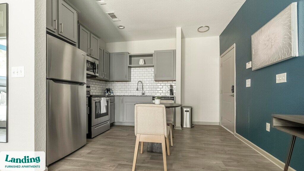 Landing offers flexible lease terms from weeks to months. Please always visit our website or contact us for the latest pricing & availability. Stay longer, save more: 6-Month Minimum base rent: starts at $2040/mo 12-Month Minimum base rent: starts at $1660/mo Landing offers flexible leases across a network of over 35,000 fully-furnished apartments throughout 375+ cities so you can rent on your terms, practically anywhere, and avoid the hassle of paying deposits or application fees. Visit to learn about all the benefits of a Landing membership, see our competitive up-to-date pricing, explore available apartments, take virtual tours, and make reservations online without jumping through traditional rental hoops. Landing's apartments at Highland Park at Northlake are designed for comfortable, easy living, with the ability to stay as long as you like. Experience living with Landing Every apartment is outfitted with all the modern essentials including: custom-designed furnishings, a fully-equipped kitchen with deluxe stainless steel appliances, a gourmet coffee maker, premium linens, Smart TVs, and incredibly fast, reliable internet for working from home. When you live with Landing, you'll enjoy a hassle-free experience with the added benefit of 24/7 access to our dedicated member experience team. Some of the nitty-gritty: a background check and proof of income are required; we're completely smoke-free; bundled utility packages and pricing vary based on length of stay; pet-friendly options available; listed price reflects a 12-month minimum stay.