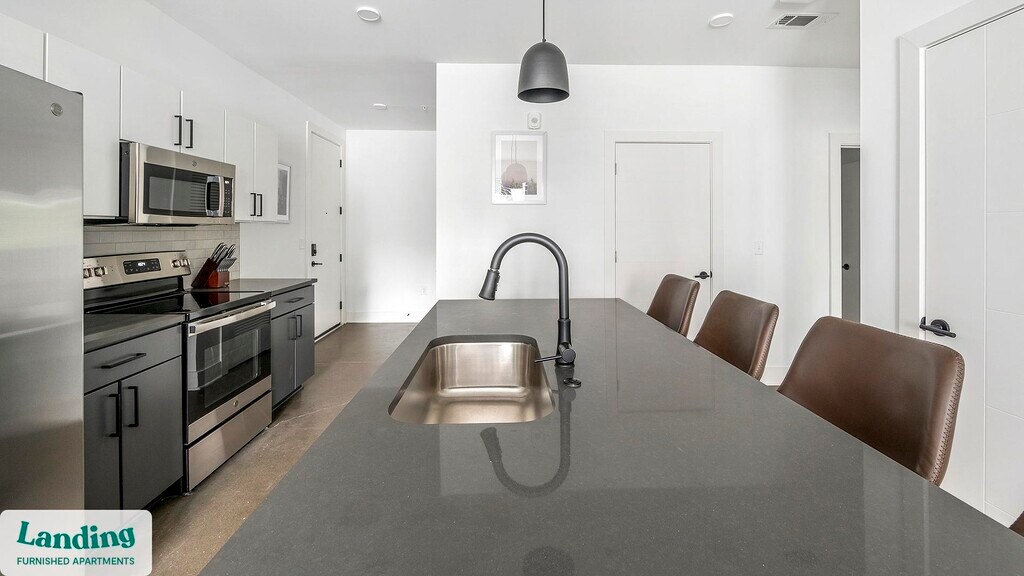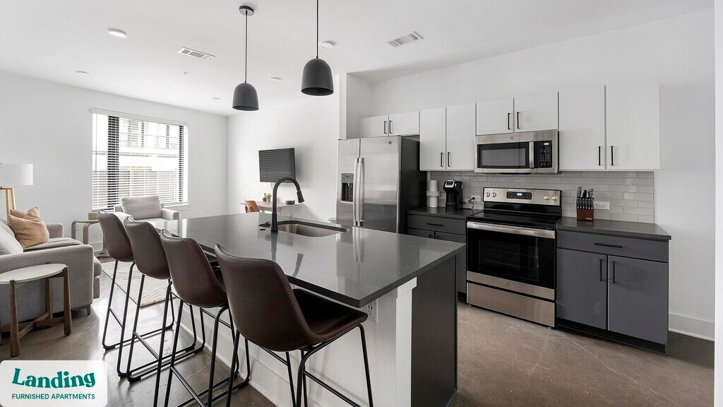 Landing offers flexible lease terms from weeks to months. Please always visit our website or contact us for the latest pricing & availability. Stay longer, save more: 6-Month Minimum base rent: starts at $3370/mo 12-Month Minimum base rent: starts at $3019/mo Landing offers flexible leases across a network of over 35,000 fully-furnished apartments throughout 375+ cities so you can rent on your terms, practically anywhere, and avoid the hassle of paying deposits or application fees. Visit to learn about all the benefits of a Landing membership, see our competitive up-to-date pricing, explore available apartments, take virtual tours, and make reservations online without jumping through traditional rental hoops. Landing's apartments at Standard Assembly are designed for comfortable, easy living, with the ability to stay as long as you like. Experience living with Landing Every apartment is outfitted with all the modern essentials including: custom-designed furnishings, a fully-equipped kitchen with deluxe stainless steel appliances, a gourmet coffee maker, premium linens, Smart TVs, and incredibly fast, reliable internet for working from home. When you live with Landing, you'll enjoy a hassle-free experience with the added benefit of 24/7 access to our dedicated member experience team. Some of the nitty-gritty: a background check and proof of income are required; we're completely smoke-free; bundled utility packages and pricing vary based on length of stay; pet-friendly options available; listed price reflects a 12-month minimum stay.