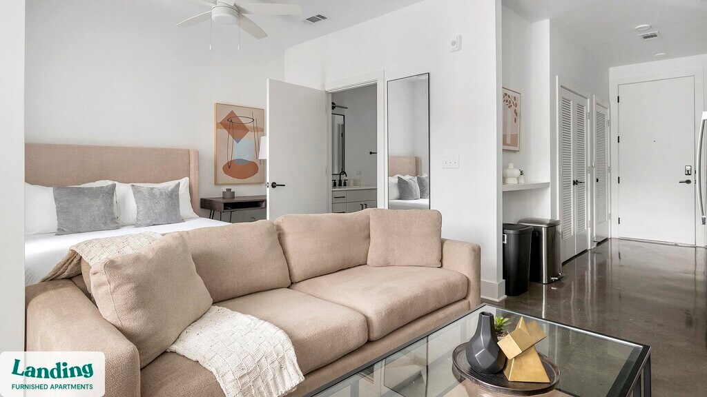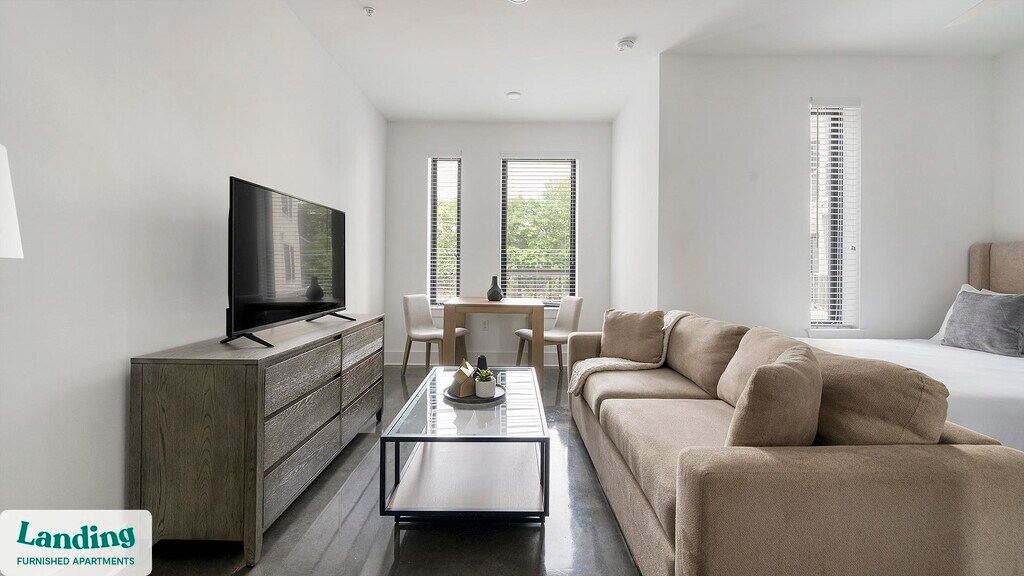 Landing offers flexible lease terms from weeks to months. Please always visit our website or contact us for the latest pricing & availability. Stay longer, save more: 6-Month Minimum base rent: starts at $2200/mo 12-Month Minimum base rent: starts at $1866/mo Landing offers flexible leases across a network of over 35,000 fully-furnished apartments throughout 375+ cities so you can rent on your terms, practically anywhere, and avoid the hassle of paying deposits or application fees. Visit to learn about all the benefits of a Landing membership, see our competitive up-to-date pricing, explore available apartments, take virtual tours, and make reservations online without jumping through traditional rental hoops. Landing's apartments at Standard Assembly are designed for comfortable, easy living, with the ability to stay as long as you like. Experience living with Landing Every apartment is outfitted with all the modern essentials including: custom-designed furnishings, a fully-equipped kitchen with deluxe stainless steel appliances, a gourmet coffee maker, premium linens, Smart TVs, and incredibly fast, reliable internet for working from home. When you live with Landing, you'll enjoy a hassle-free experience with the added benefit of 24/7 access to our dedicated member experience team. Some of the nitty-gritty: a background check and proof of income are required; we're completely smoke-free; bundled utility packages and pricing vary based on length of stay; pet-friendly options available; listed price reflects a 12-month minimum stay.