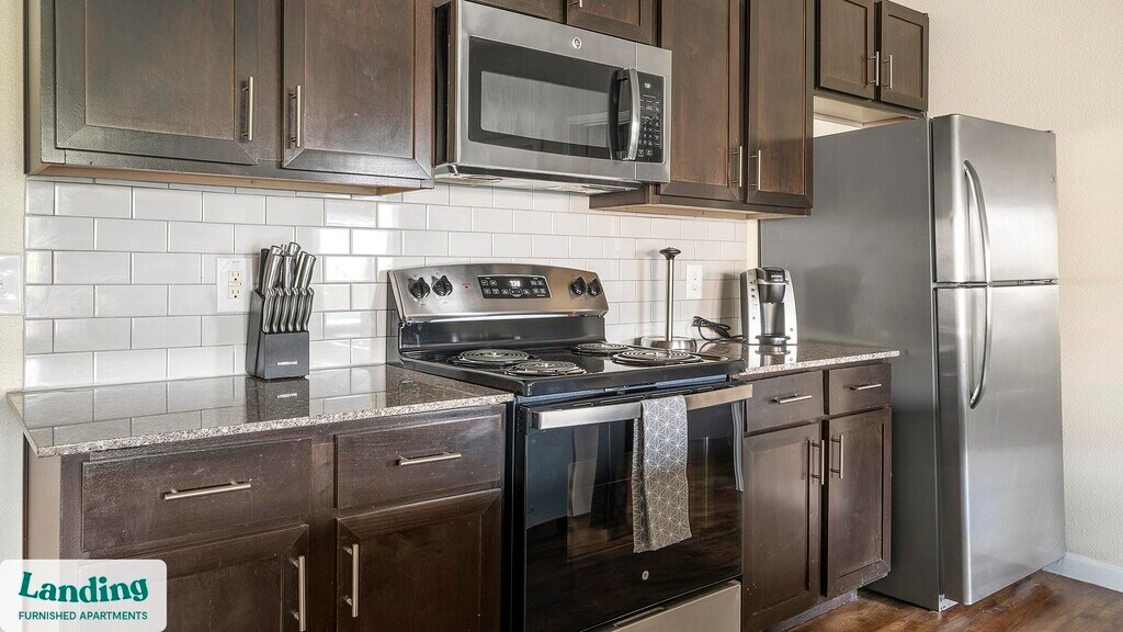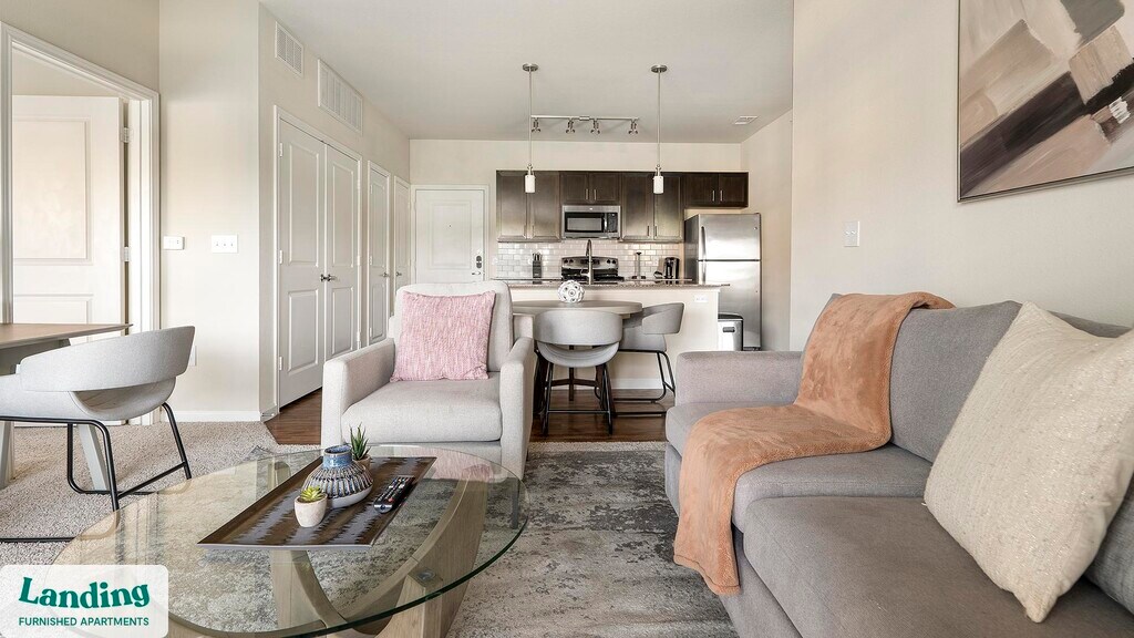 Landing offers flexible lease terms from weeks to months. Please always visit our website or contact us for the latest pricing & availability. Stay longer, save more: 6-Month Minimum base rent: starts at $2128/mo 12-Month Minimum base rent: starts at $1834/mo Landing offers flexible leases across a network of over 35,000 fully-furnished apartments throughout 375+ cities so you can rent on your terms, practically anywhere, and avoid the hassle of paying deposits or application fees. Visit to learn about all the benefits of a Landing membership, see our competitive up-to-date pricing, explore available apartments, take virtual tours, and make reservations online without jumping through traditional rental hoops. Landing's apartments at Bridge at Southpark Meadows are designed for comfortable, easy living, with the ability to stay as long as you like. Experience living with Landing Every apartment is outfitted with all the modern essentials including: custom-designed furnishings, a fully-equipped kitchen with deluxe stainless steel appliances, a gourmet coffee maker, premium linens, Smart TVs, and incredibly fast, reliable internet for working from home. When you live with Landing, you'll enjoy a hassle-free experience with the added benefit of 24/7 access to our dedicated member experience team. Some of the nitty-gritty: a background check and proof of income are required; we're completely smoke-free; bundled utility packages and pricing vary based on length of stay; pet-friendly options available; listed price reflects a 12-month minimum stay.