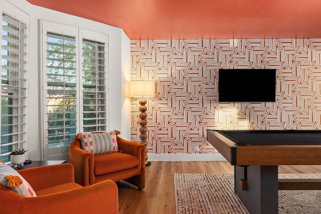 Feel at home in this 7-bedroom luxury home in a prime location in Peoria, Arizona. This spacious home is designed specifically for families and groups. This home offers a chef’s kitchen that is fully stocked with high-end appliances, ample cabinetry, a large island, and a coffee maker. Enjoy the living room with a smart TV, a large sectional sofa, a high ceiling, and direct access to the patio. For entertainment, there is a media/theater room with comfy seating, a stylish indoor bar and lounge, a pool table, arcade, and shuffleboard. The home also features a private 6-hole putting green and an amazing backyard with a fire pit, grill, playset, and tons of seating. There is also a basketball court and a private heated pool with volleyball and a hot tub. The heated pool fee is $100 per night. The pool can be heated to about 20-25 degrees above the ambient temperature. It is recommended that the pool is heated in the months between October to May each year, and a 3-day notice is required before your arrival if you'd like the pool heated. The pool must be heated for the entirety of your stay. Up to 2 dogs are allowed for $125 per stay, no cats please. Located in a tranquil and inviting neighborhood in Peoria, this home is near the Peoria Sports Complex, State Farm Stadium, and casinos. Outdoor enthusiasts will love the nearby recreational options, including Lake Pleasant, numerous parks, and walking trails. Shopping centers, grocery stores, cafés, and restaurants are all nearby. No parties are allowed, and violations may result in immediate termination of the stay. Guests must be 25 years or older to book this property. Check-in is at 4pm and check-out is at 10am. We kindly ask that your dog is crate trained and that you pick up after your dog. [SI]